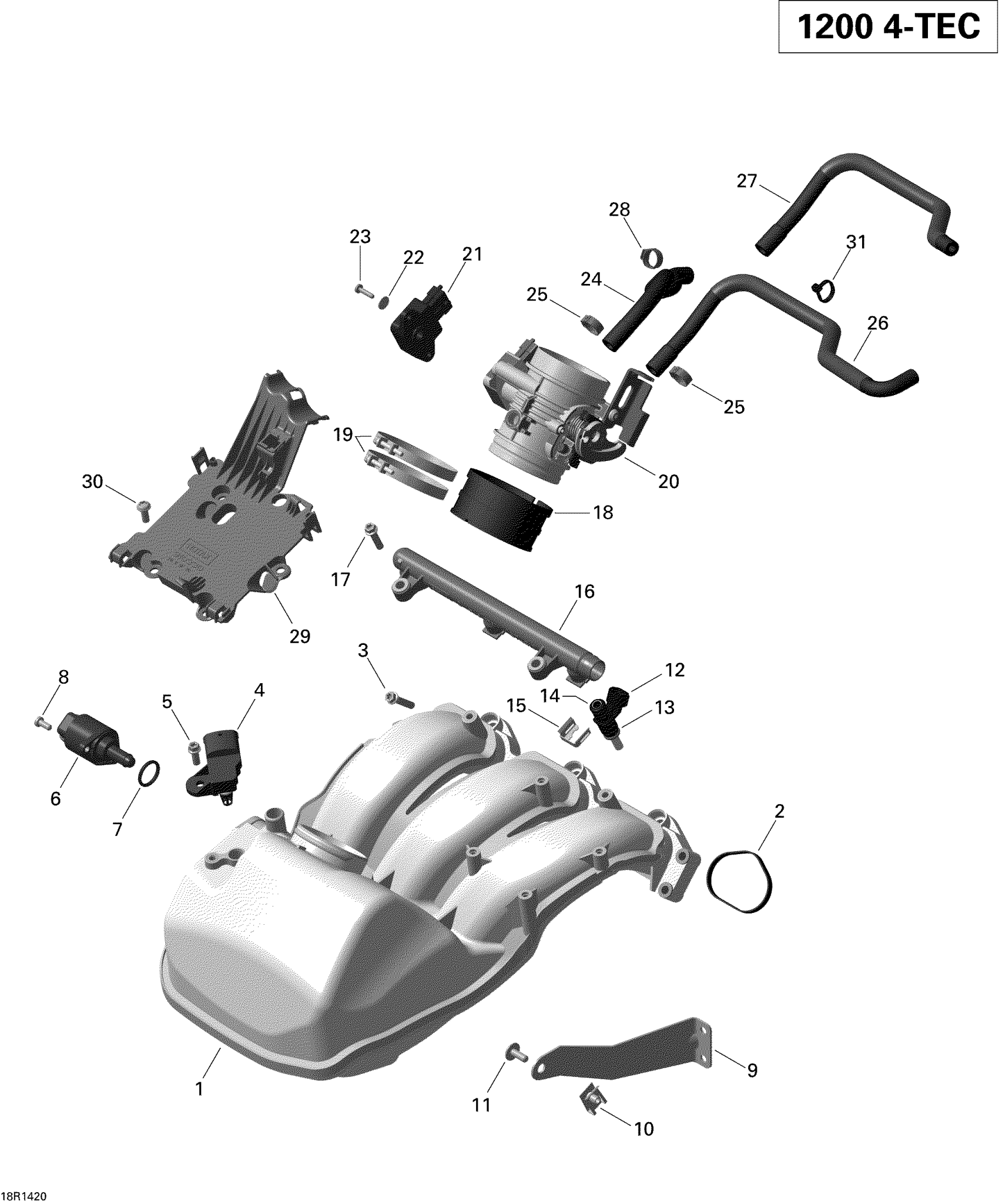 Ski-Doo MXZ TNT 12004TEC XR, 2014 Air Intake Manifold And Throttle Body 1 Diagram
