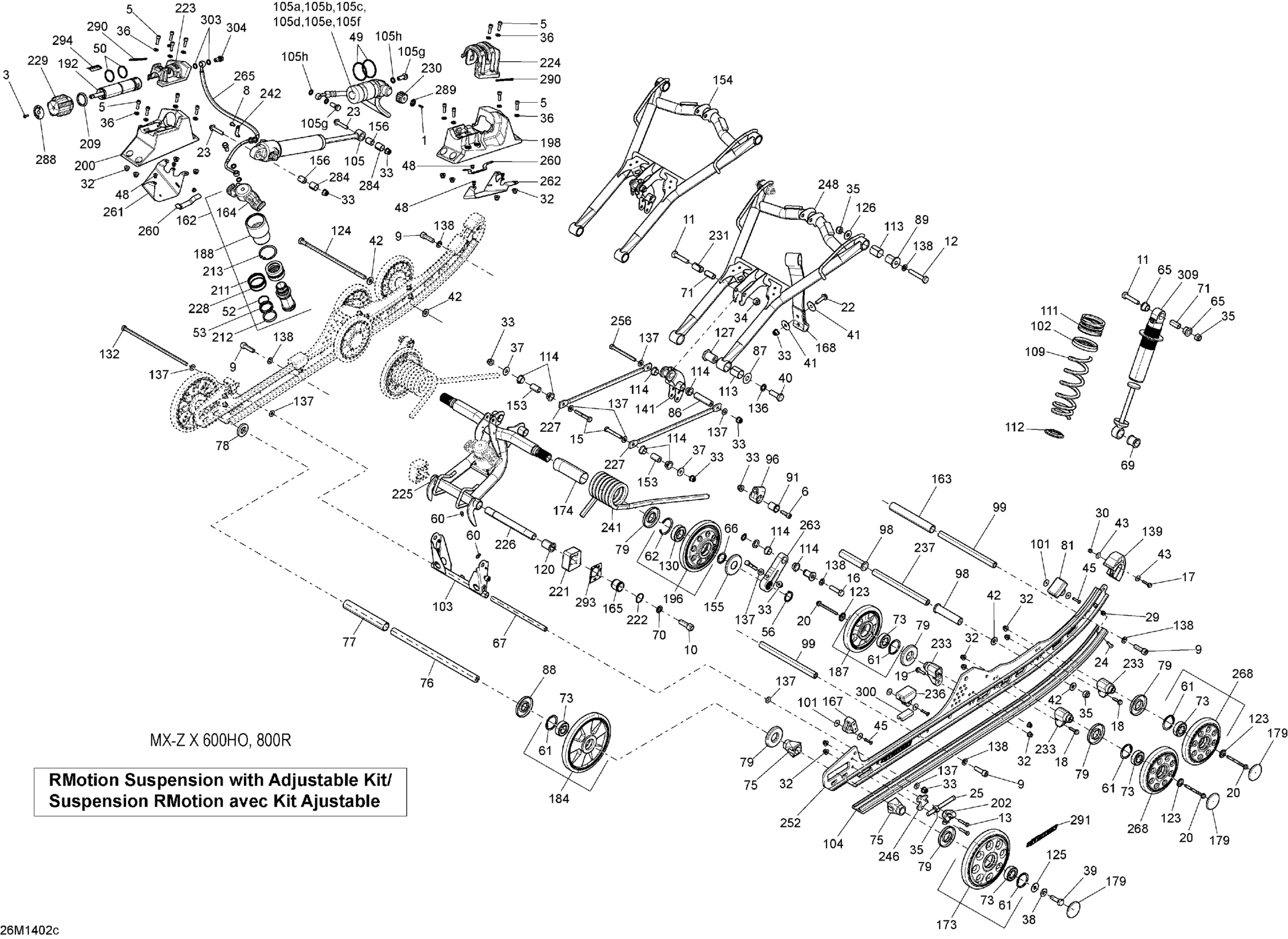 Ski-Doo MXZ X 600HOE XS, 2014 08- Rear Suspension RMotion w ADJ KIT_26M1402c Diagram