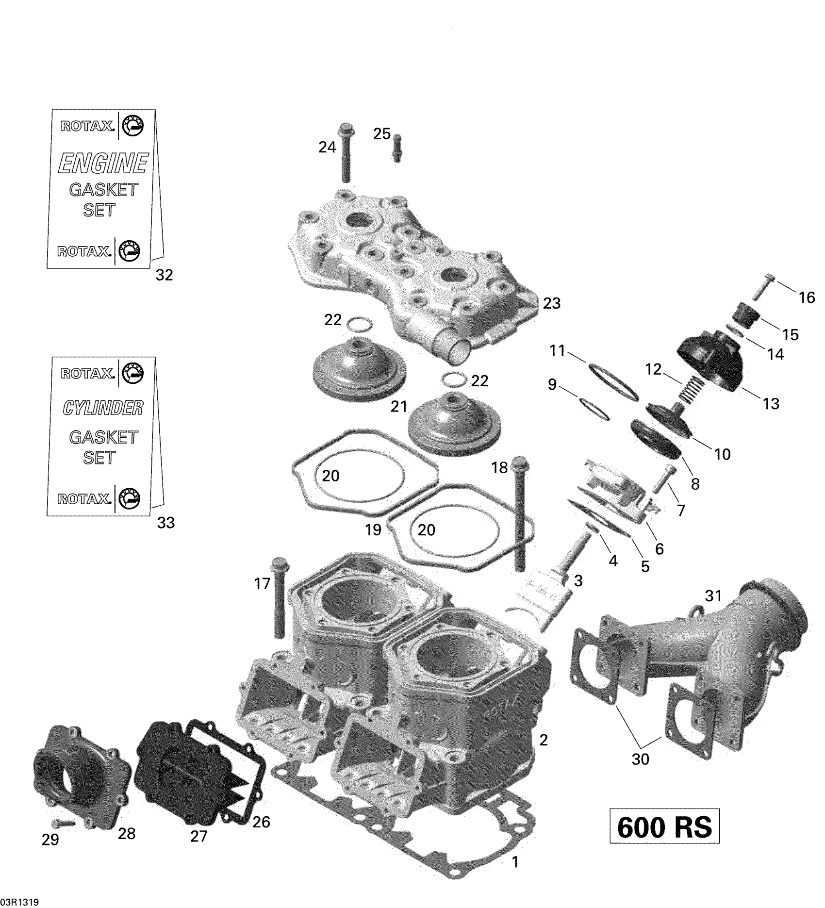 Ski-Doo MXZ X 600RS XP, 2013 Cylinder, Exhaust Manifold And Reed Valve Diagram