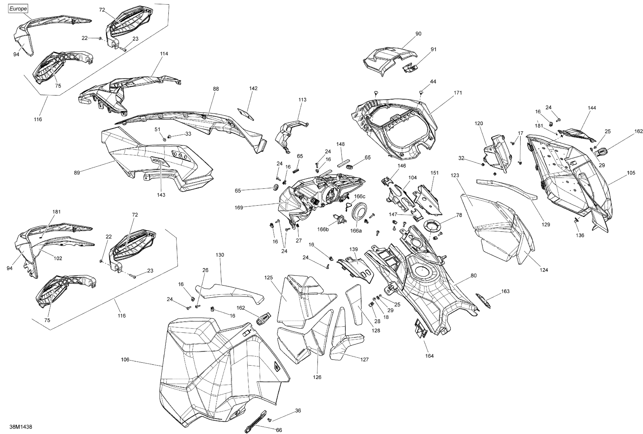 Ski-Doo MXZ X 600RS XS RS, 2014 09- Hood, Windshield And Console _38M1438 Diagram