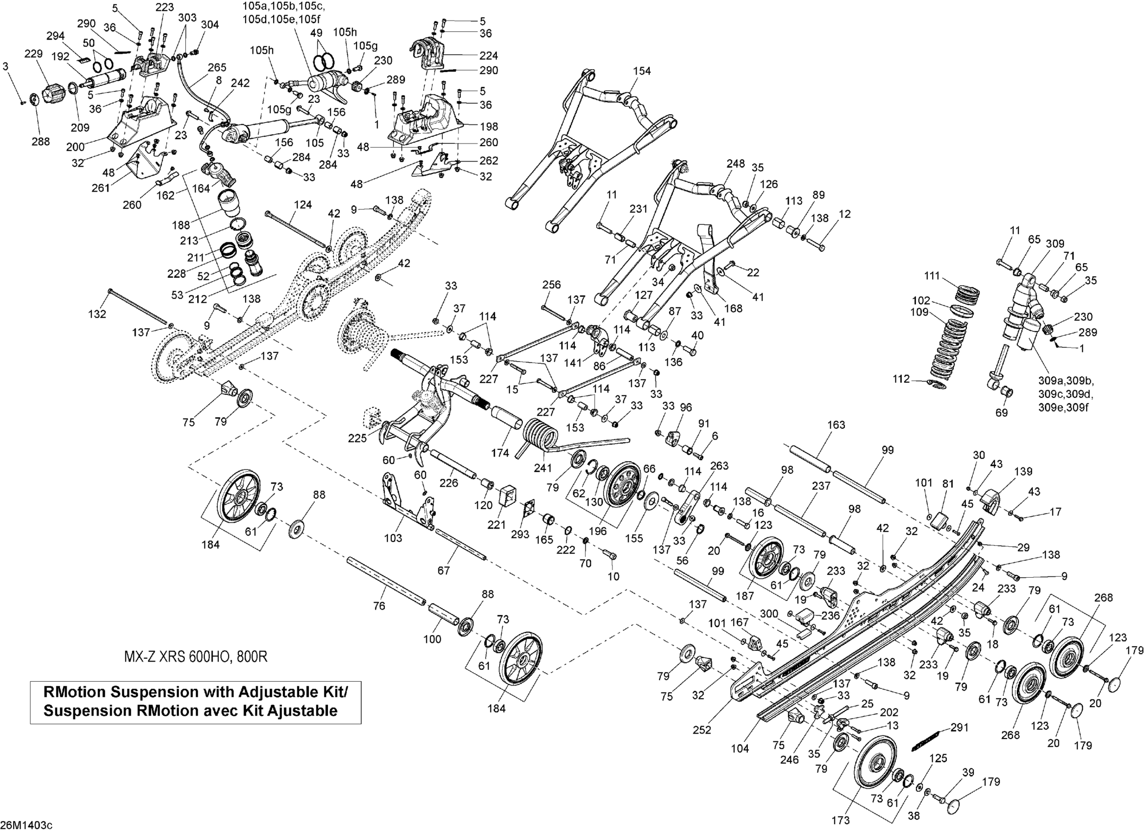 Ski-Doo MXZ X-RS 600HOE XS RS, 2014 08- Rear Suspension RMotion w ADJ KIT_26M1403c Diagram