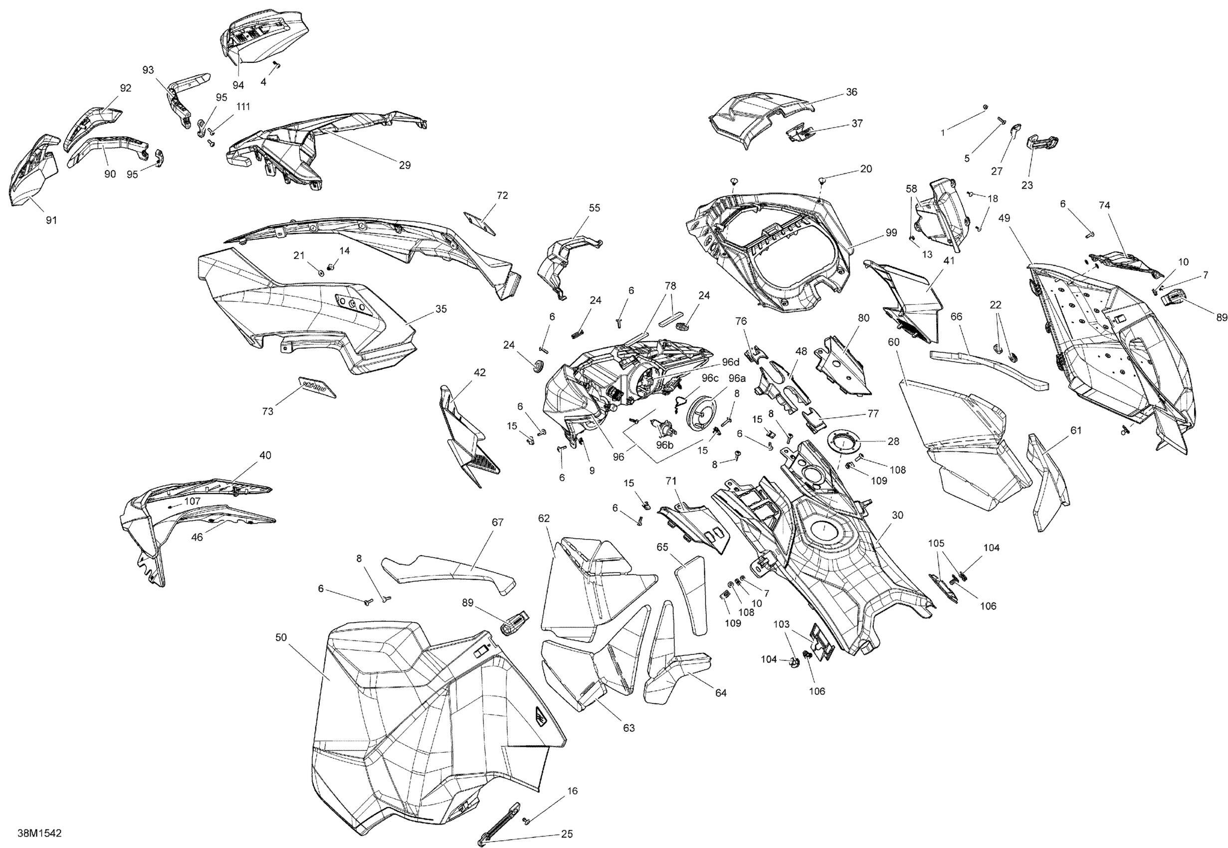 Ski-Doo MXZ X-RS 600HOE XS RS, 2015 09- Hood _38M1542 Diagram