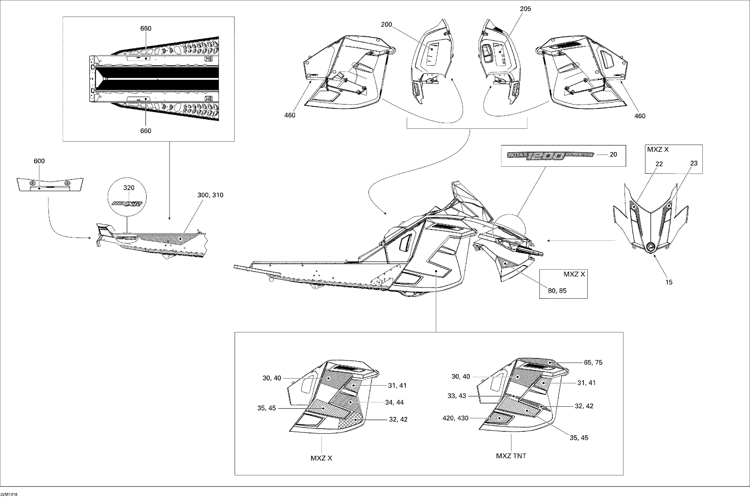 Ski-Doo MXZ X & TNT 1200 XR, 2013 Decals TNT Diagram