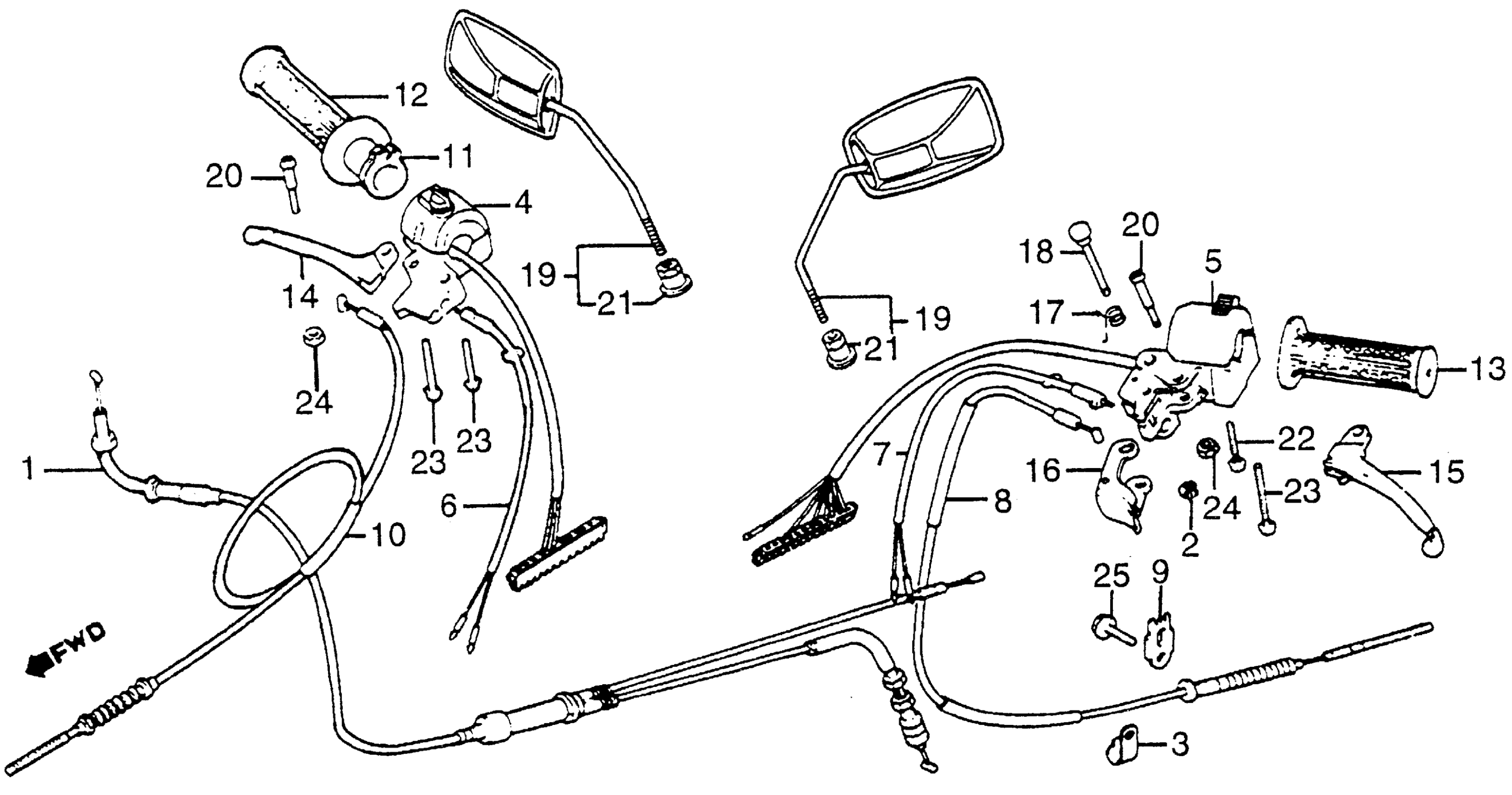 Honda NB50MA (83) AERO 50, JPN, VIN# JH2AB070-DK000004 TO JH2AB070-DK008003 CONTROL LEVERS + CABLES + SWITCHES Diagram