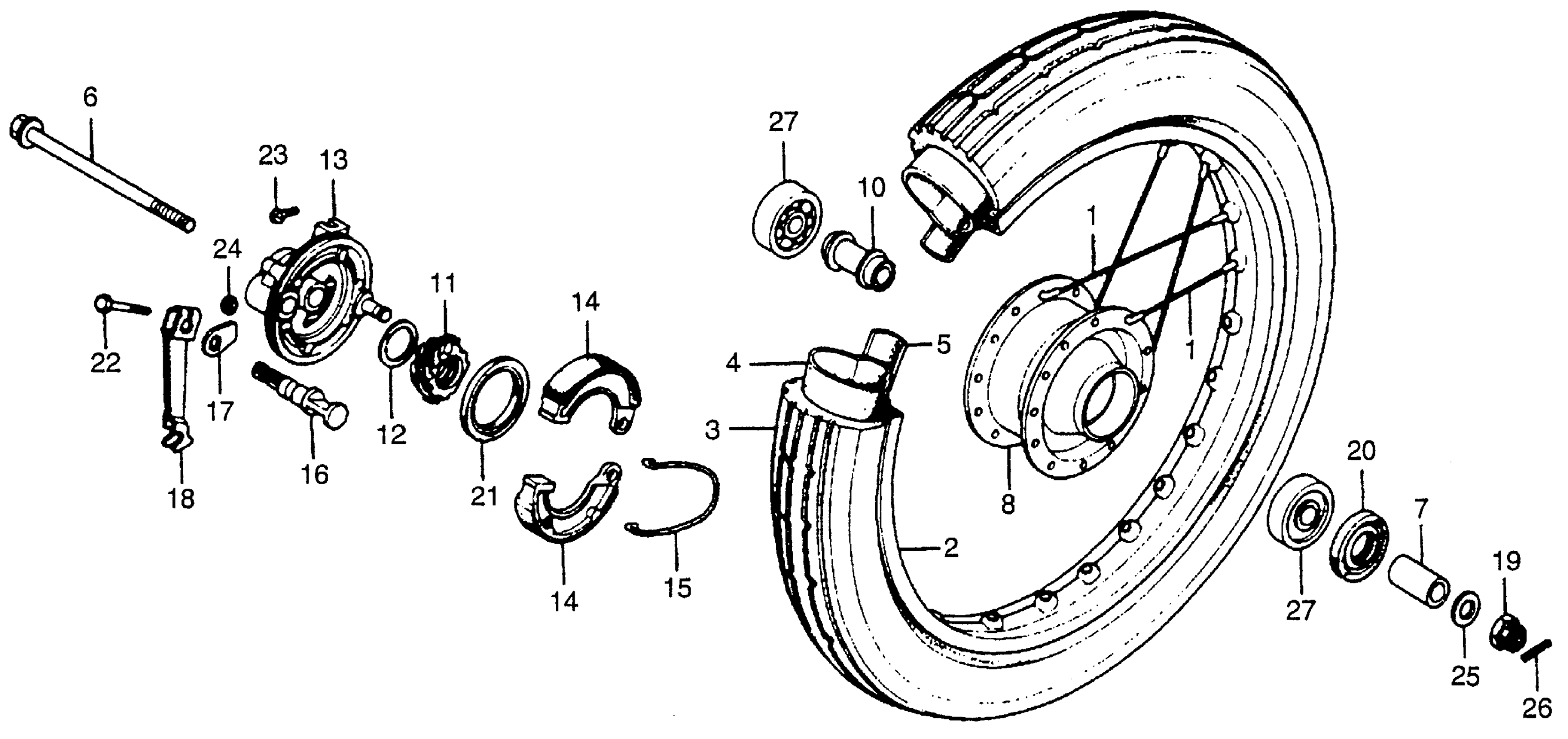 Honda NC50A (79) EXPRESS, JPN, VIN# NC50-2100011 FRONT WHEEL + FRONT BRAKE PANEL Diagram