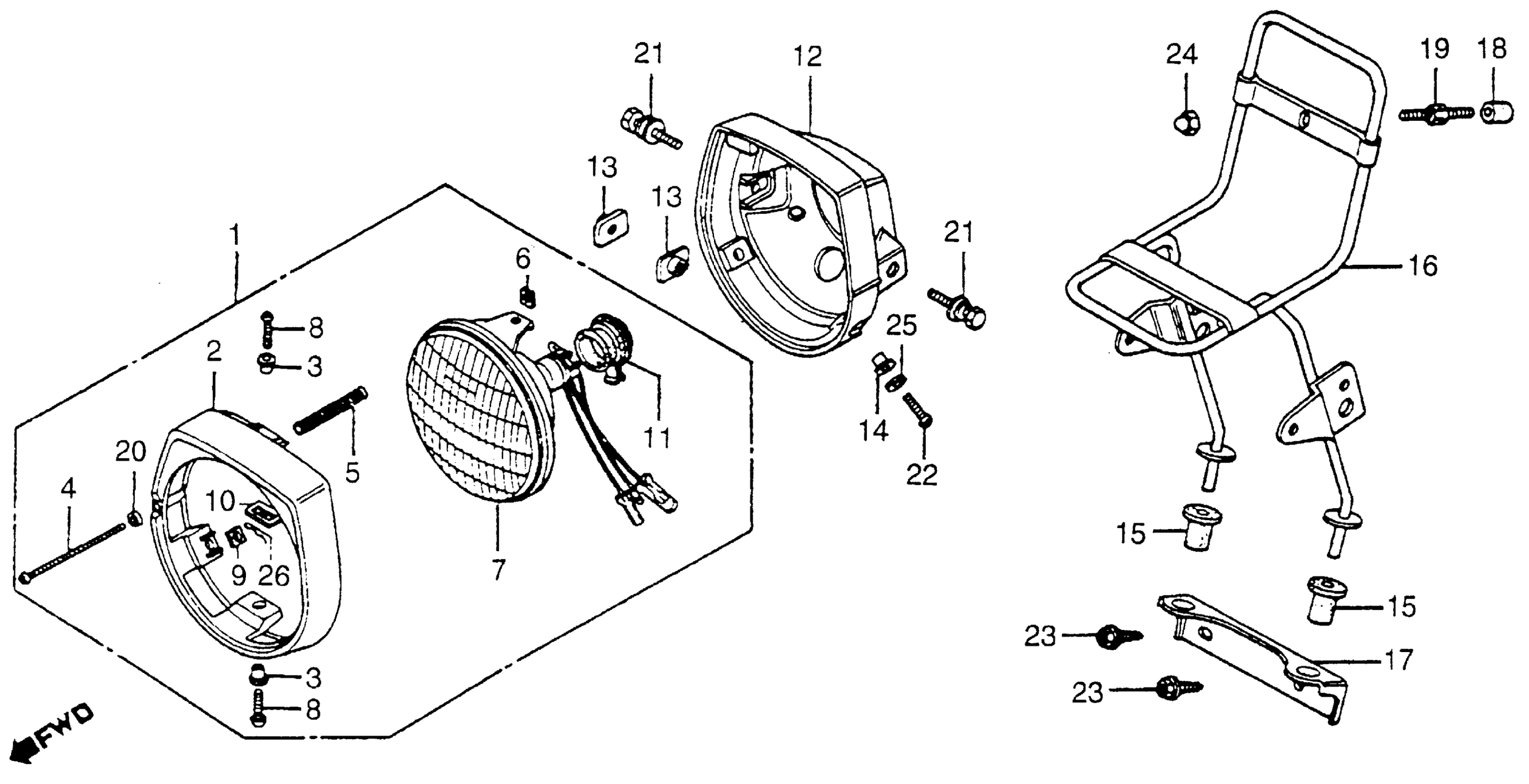 Honda NC50A (83) EXPRESS, JPN, VIN# JH2AB100-DS100001 TO JH2AB100-DS105061 HEADLIGHT FRONT CARRIER Diagram