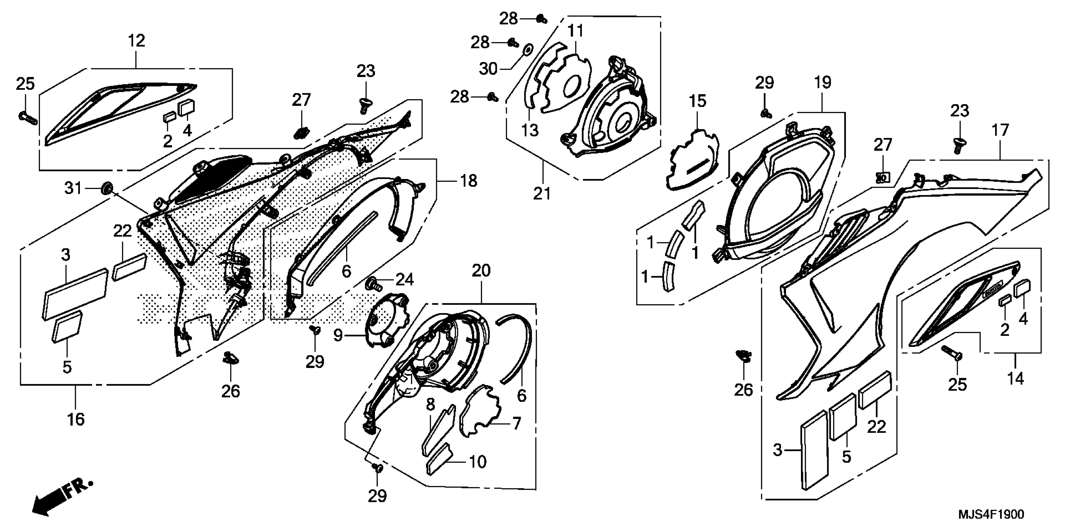 Honda NC700JDAC (18) MOTORCYCLE, JPN, VIN# JH2RC811-JK300001 ENGINE COVER@SIDE PANEL Diagram