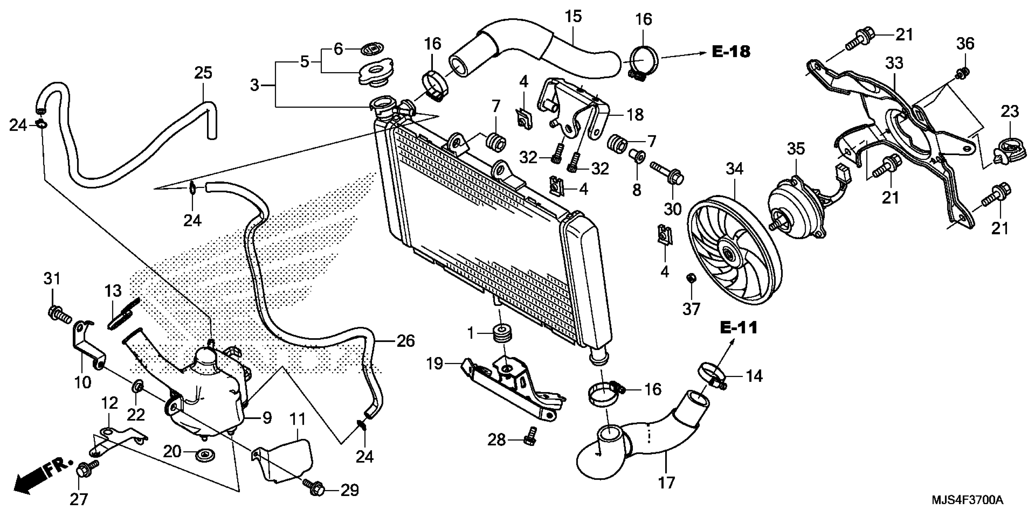 Honda NC700JDAC (18) MOTORCYCLE, JPN, VIN# JH2RC811-JK300001 RADIATOR Diagram