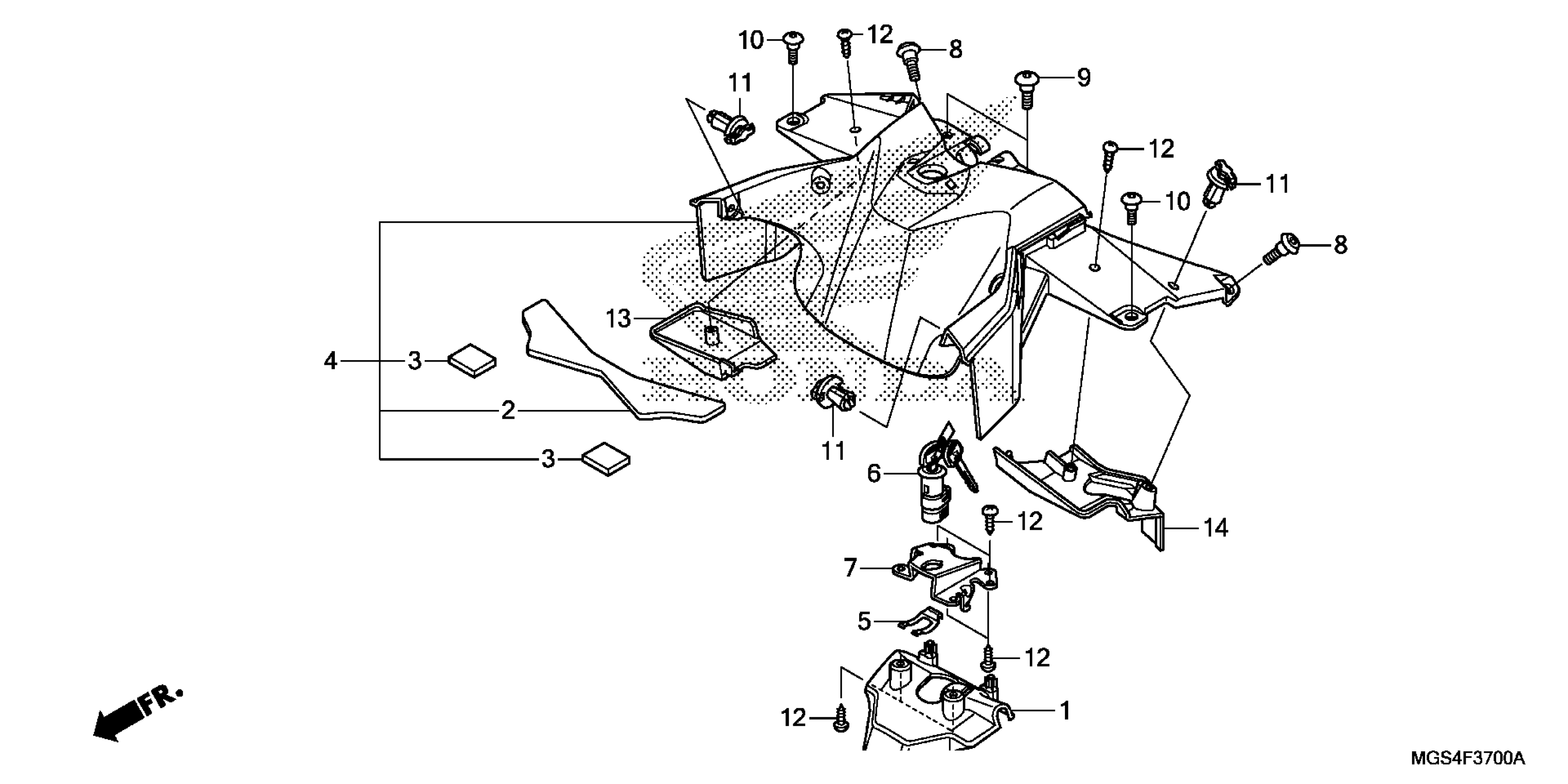 Honda NC700XDAC (13) NC700XD, JPN, VIN# JH2RC631-DK100001 CENTER COVER Diagram
