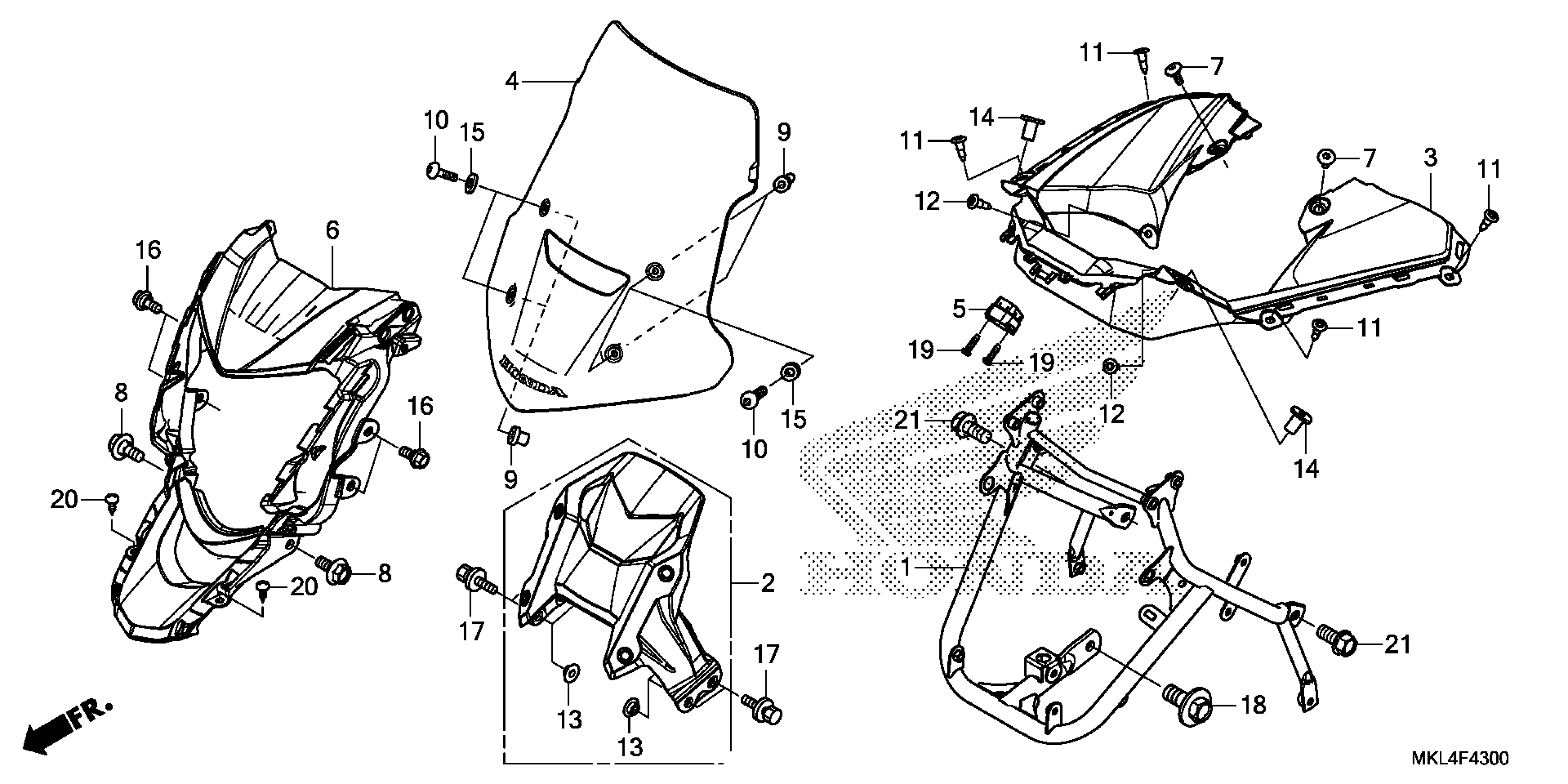 Honda NC750XAC (19) MOTORCYCLE, JPN, VIN# JH2RC901-KK100001 FRONT COWL Diagram
