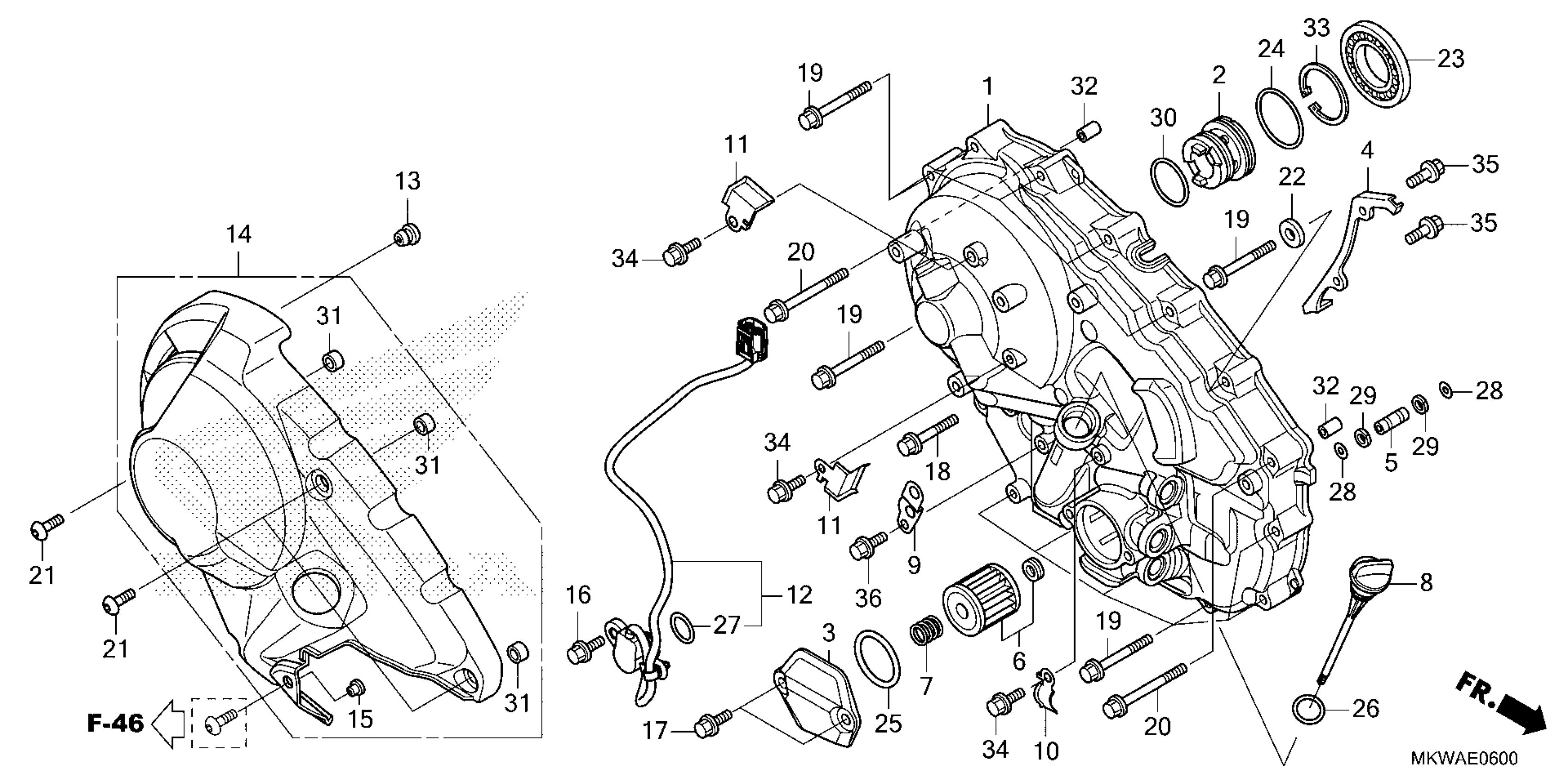 Honda NC750XD2AC (25) MOTORCYCLE, JPN, VIN# JH2RH231-SK000001 TO JH2RH231-SK099999 RIGHT CRANKCASE COVER Diagram