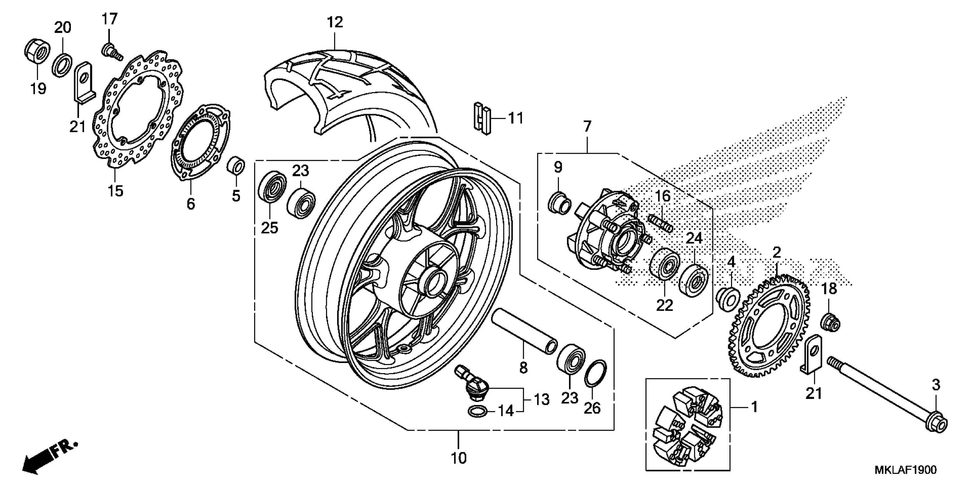 Honda NC750XDA (20) MOTORCYCLE, JPN, VIN# JH2RC904-LK200001 REAR WHEEL Diagram