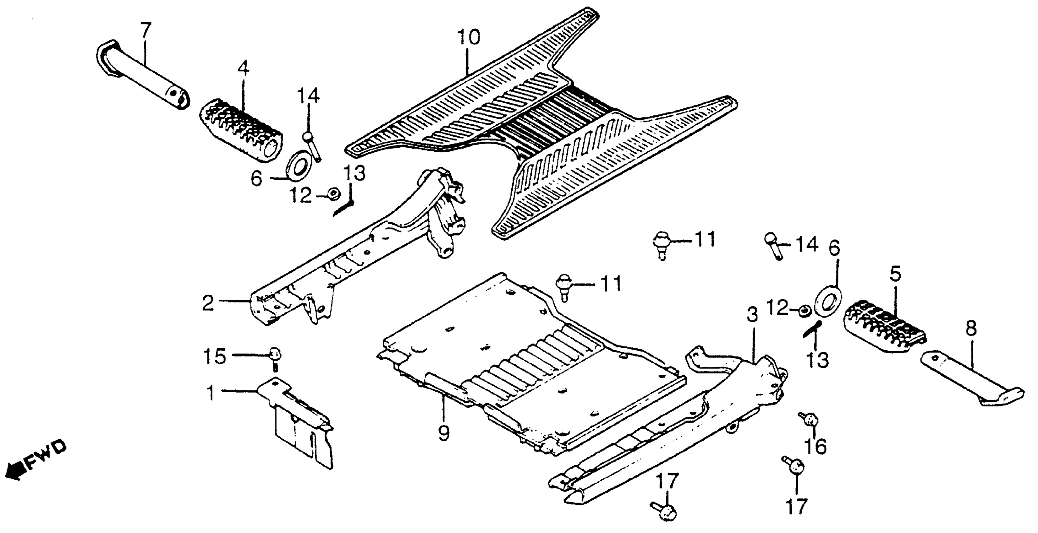 Honda NH125A (84) AERO 125, JPN, VIN# JH2JF010-ES000005 FLOOR PANEL + FLOOR BOARD Diagram