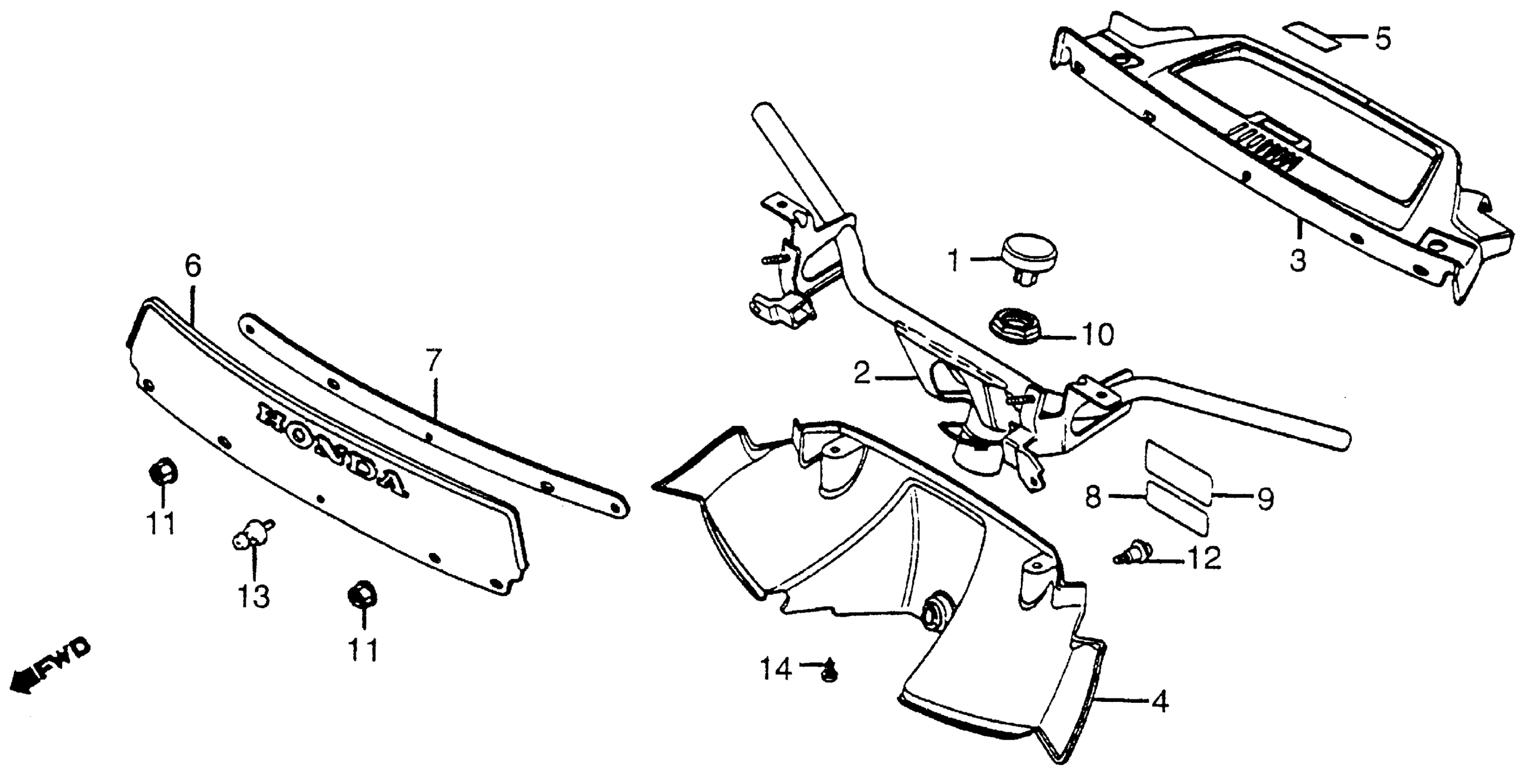 Honda NH125A (84) AERO 125, JPN, VIN# JH2JF010-ES000005 HANDLEBAR + HANDLEBAR COVER + WINDSCREEN Diagram
