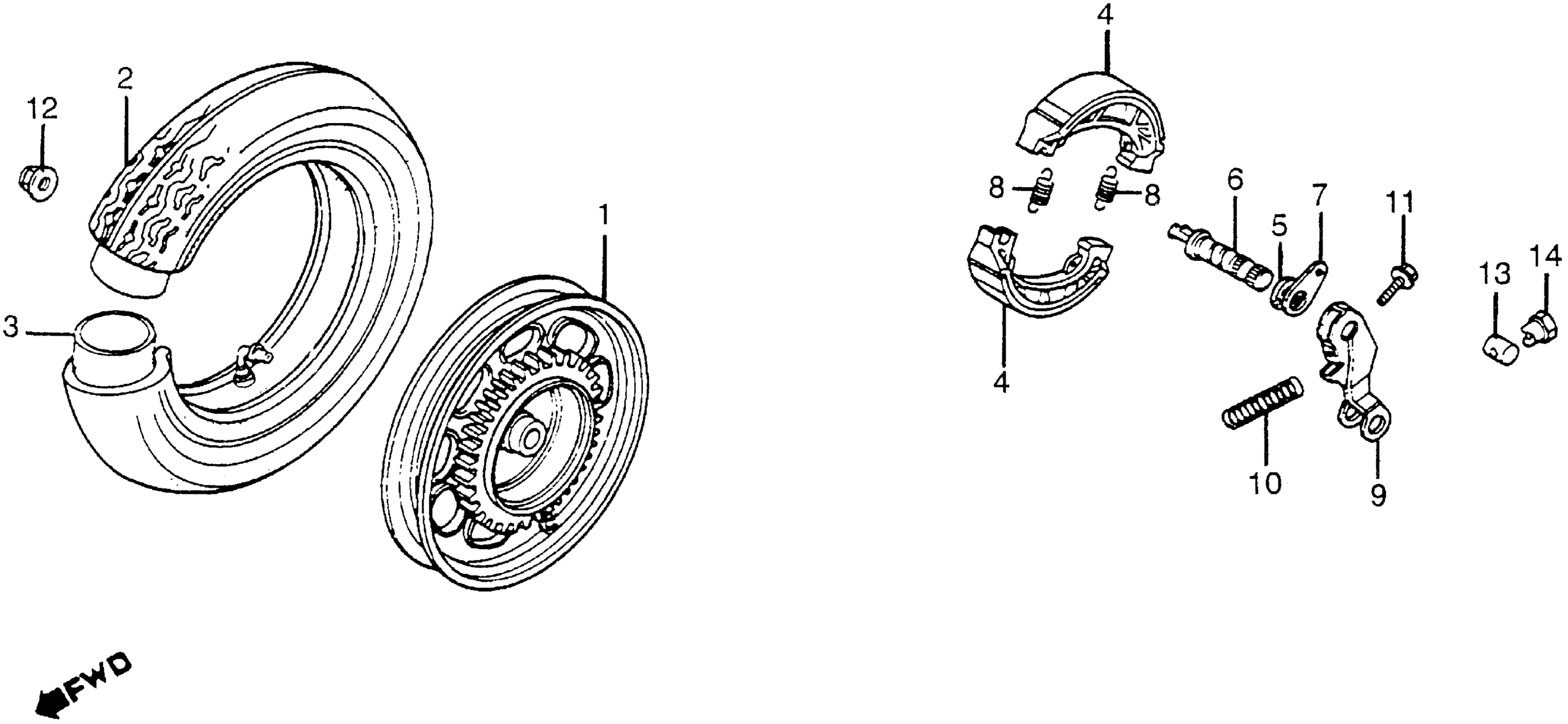 Honda NH80A (85) AERO 80, JPN, VIN# JH2HF010-FK200012 REAR WHEEL Diagram