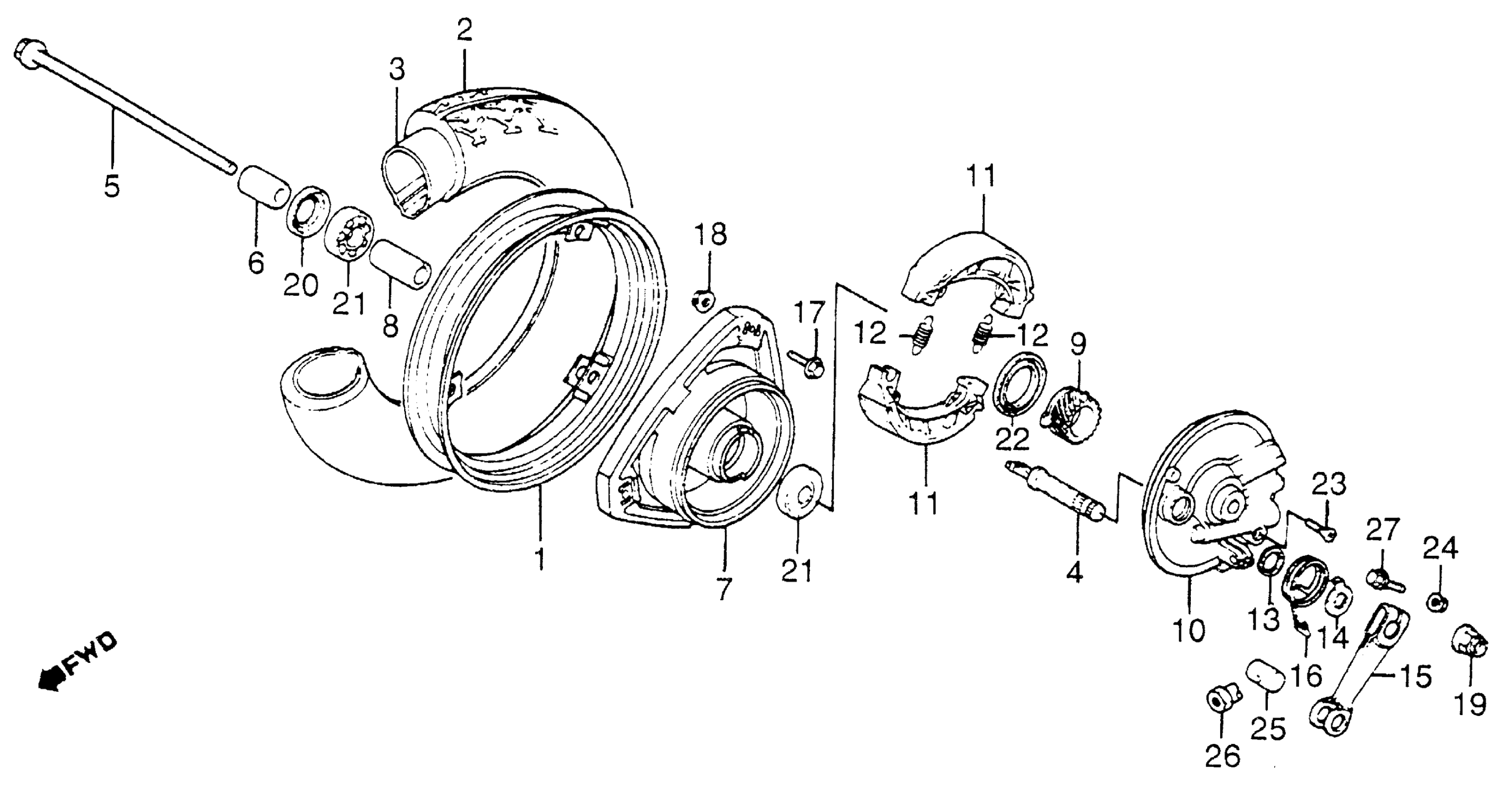Honda NH80MDA (83) AERO 80, JPN, VIN# JH2HF010-DS000008 TO JH2HF010-DS014522 FRONT WHEEL Diagram