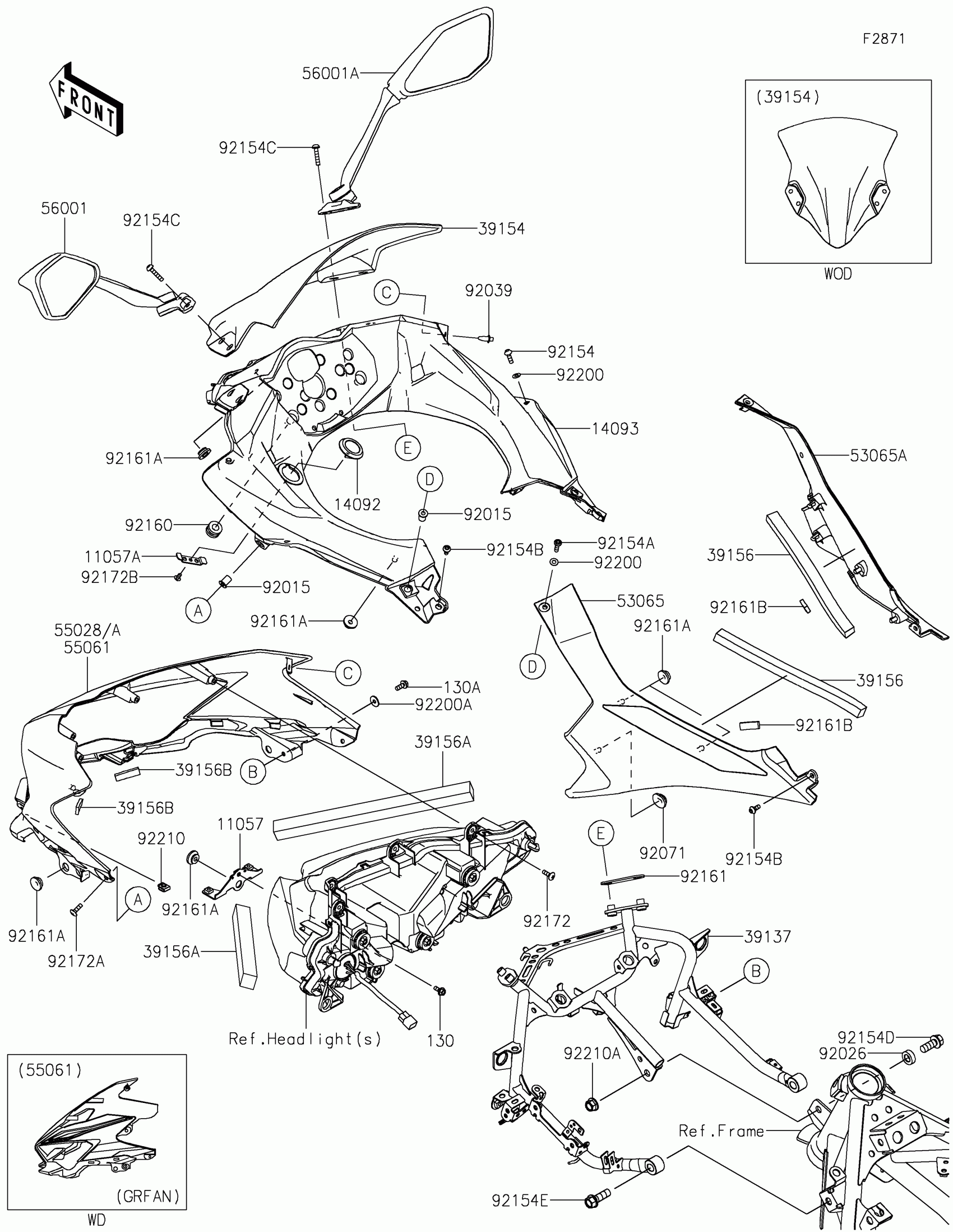 Kawasaki Ninja 400 ABS Cowling Diagram