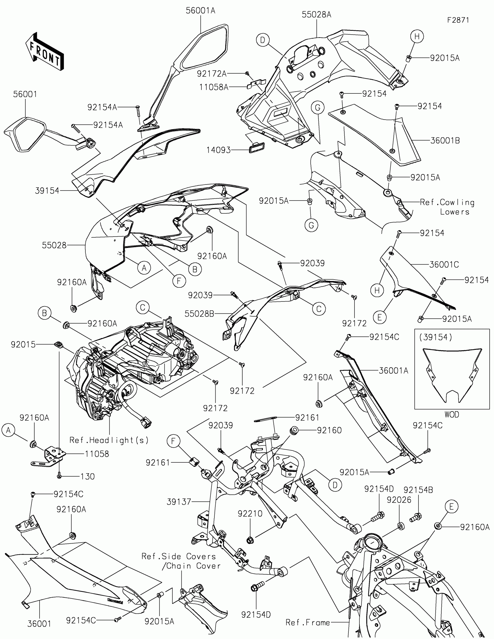 Kawasaki Ninja 500 ABS Cowling Diagram