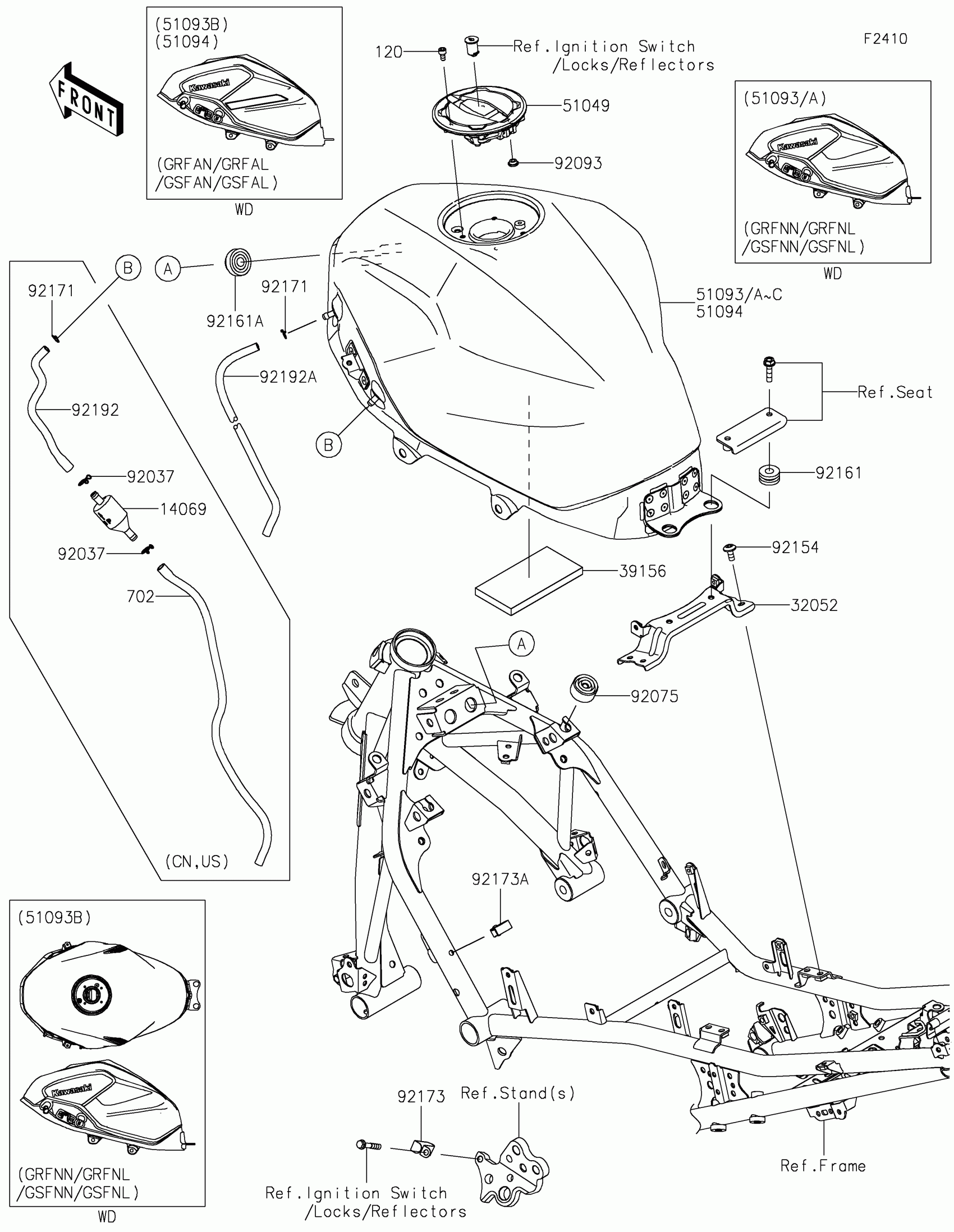 Kawasaki NINJA® 500 ABS Fuel Tank Diagram
