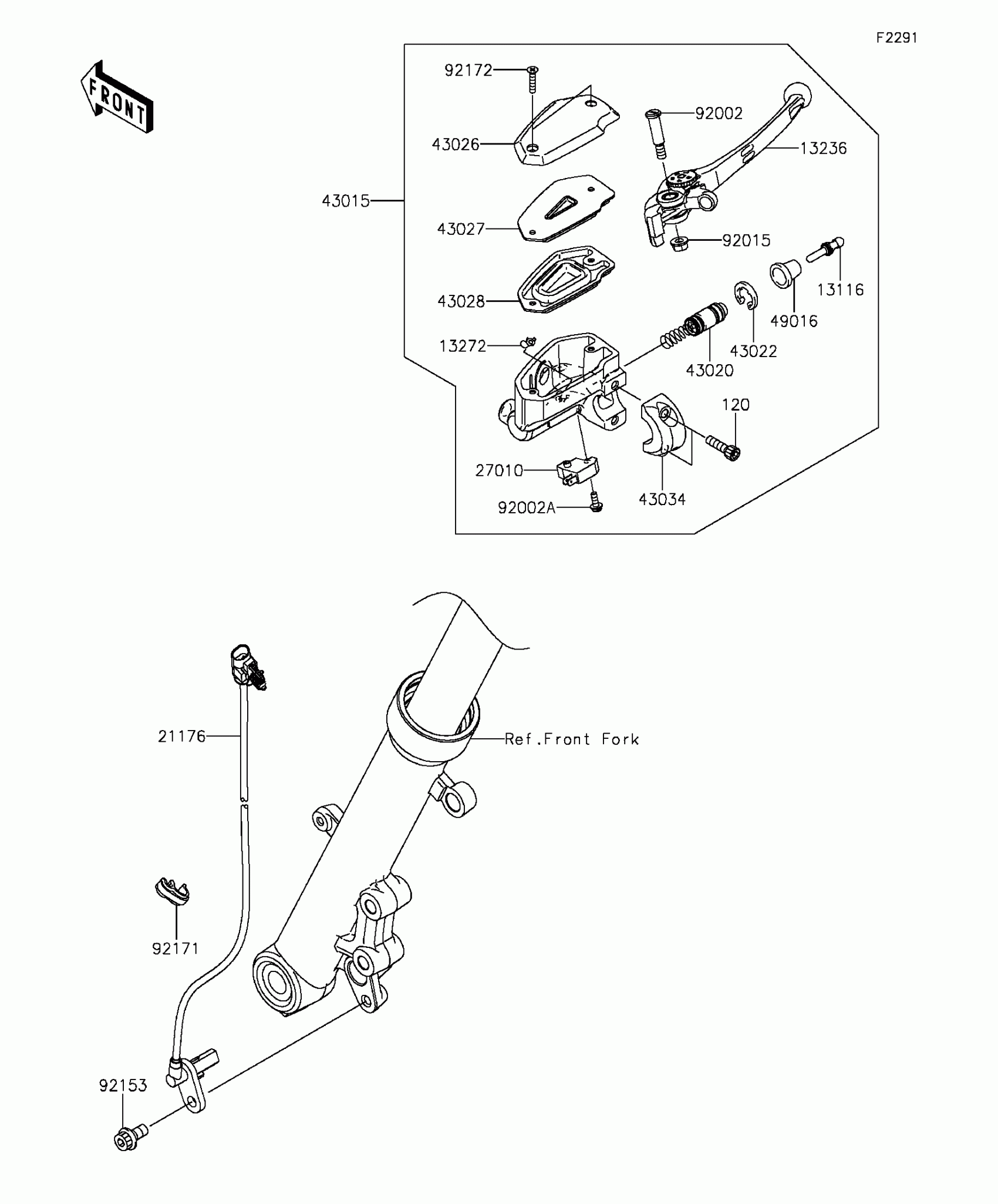 Kawasaki Ninja® 650 ABS Front Master Cylinder Diagram