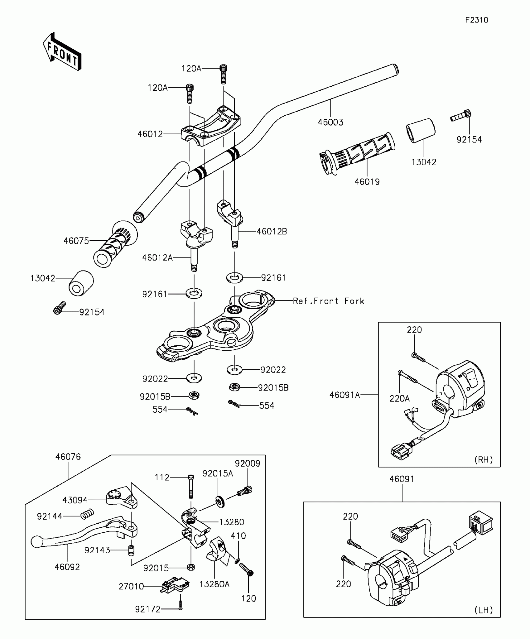 Kawasaki Ninja® 650 ABS Handlebar Diagram
