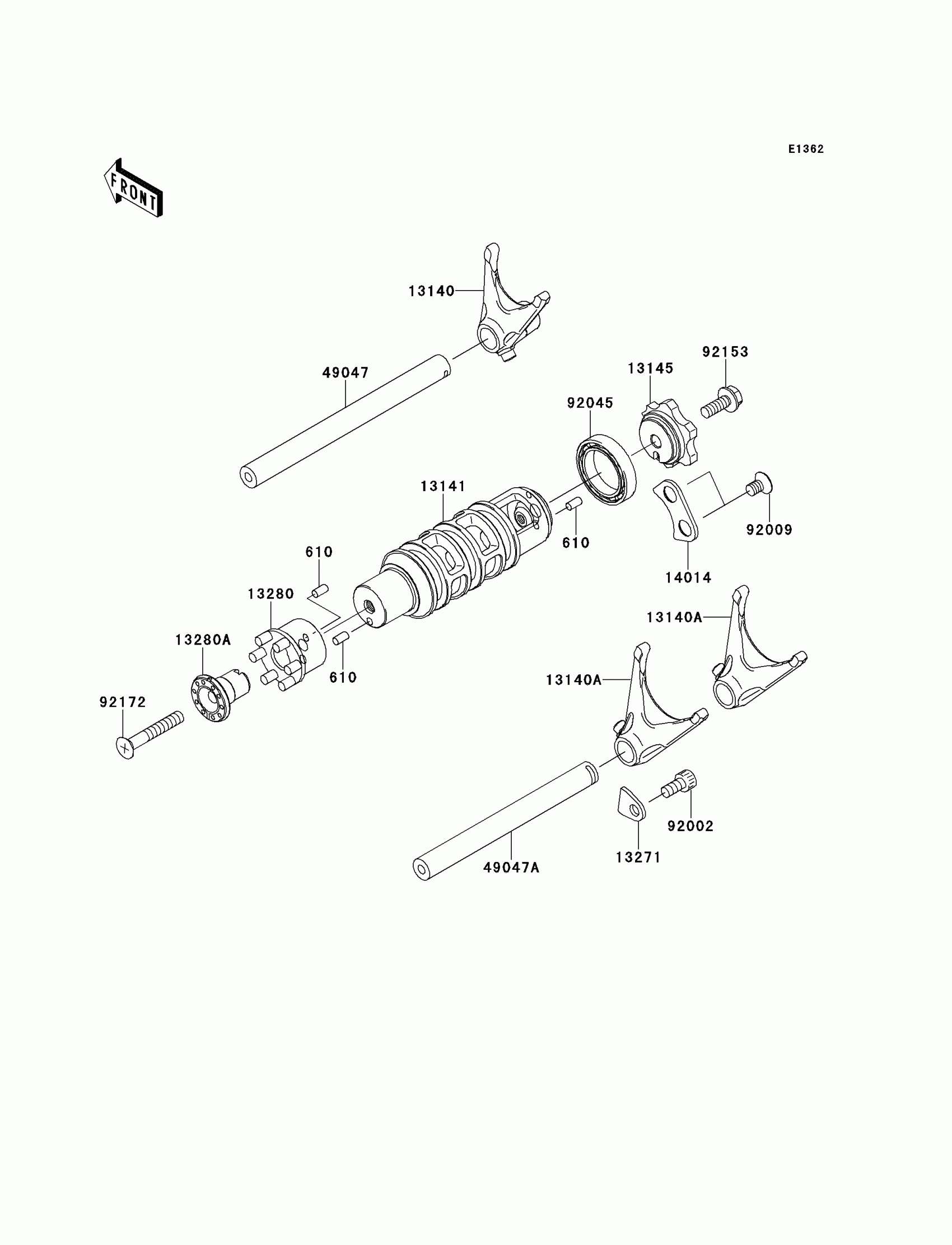 Kawasaki Ninja® 650R Gear Change Drum/Shift Fork(s) Diagram