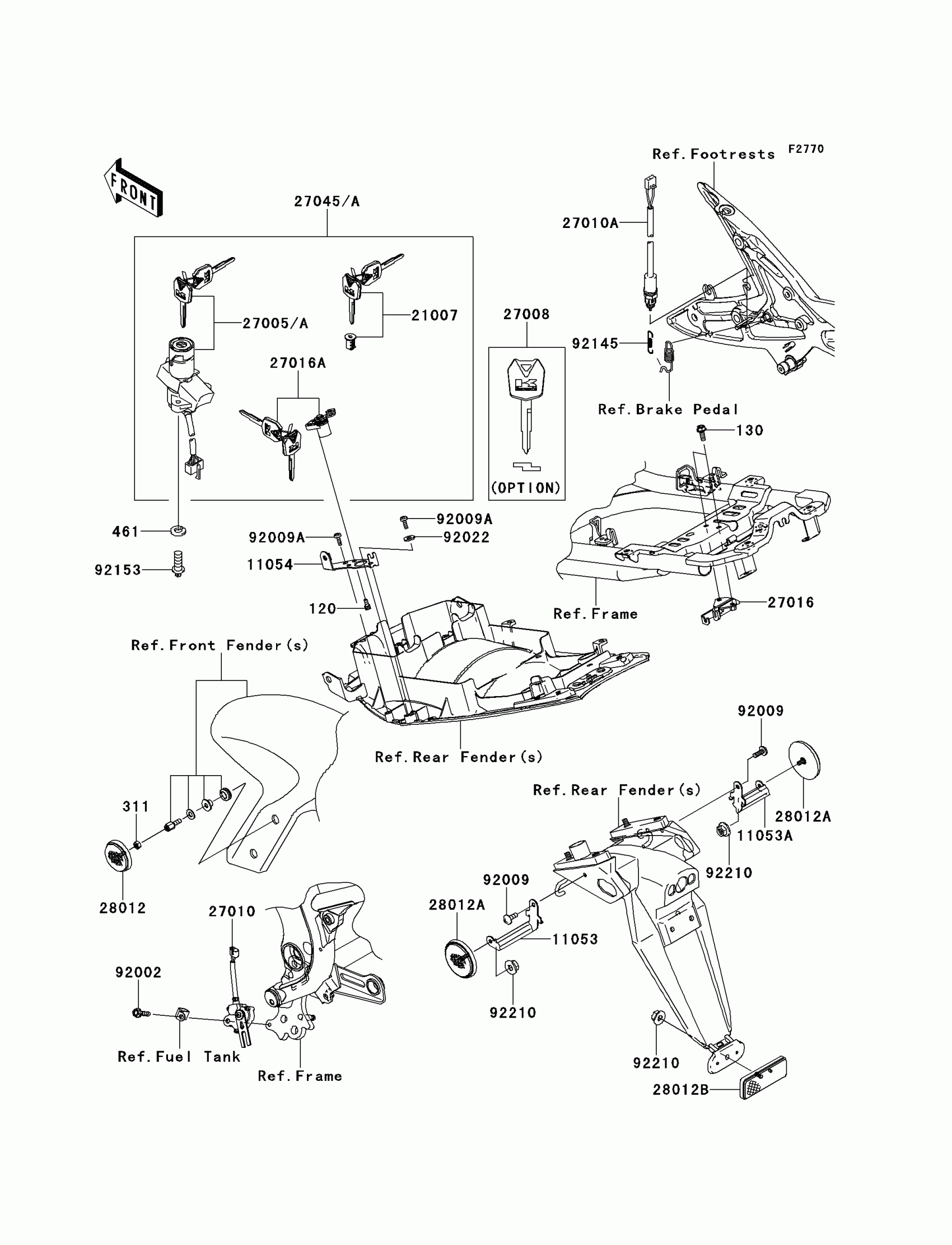 Kawasaki Ninja® 650R Ignition Switch/Locks/Reflectors Diagram