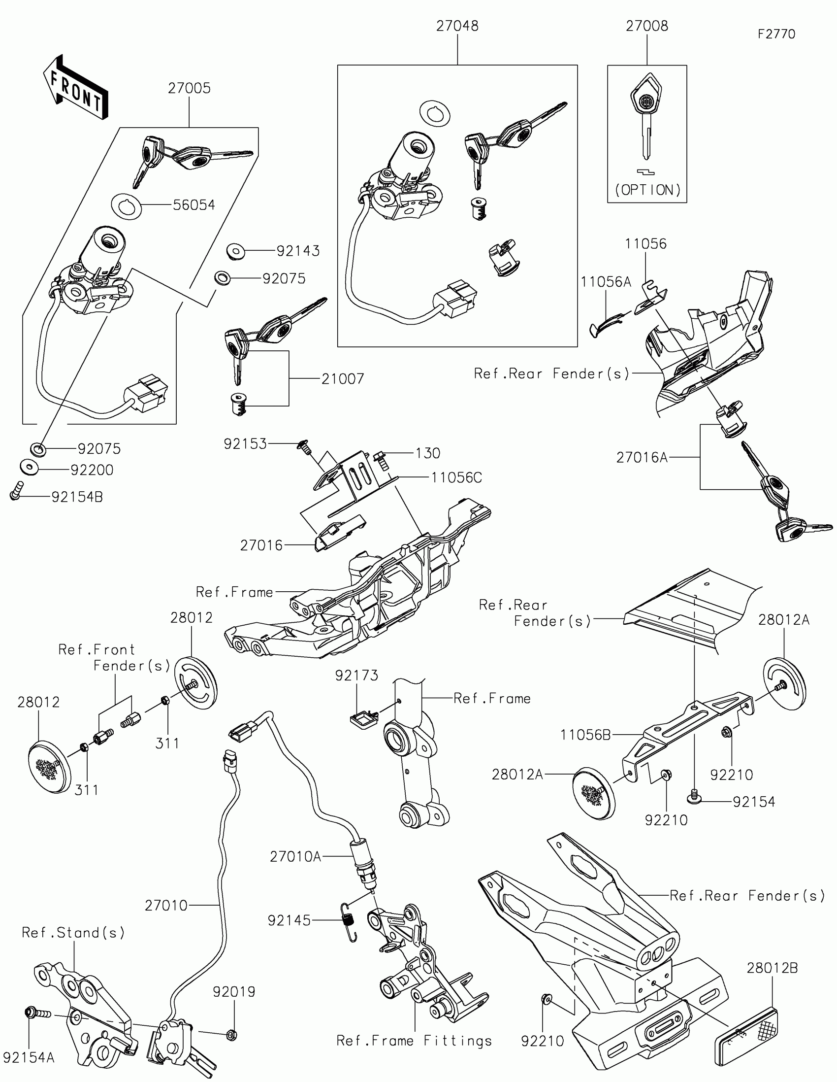 Kawasaki NINJA H2® ABS Ignition Switch/Locks/Reflectors Diagram