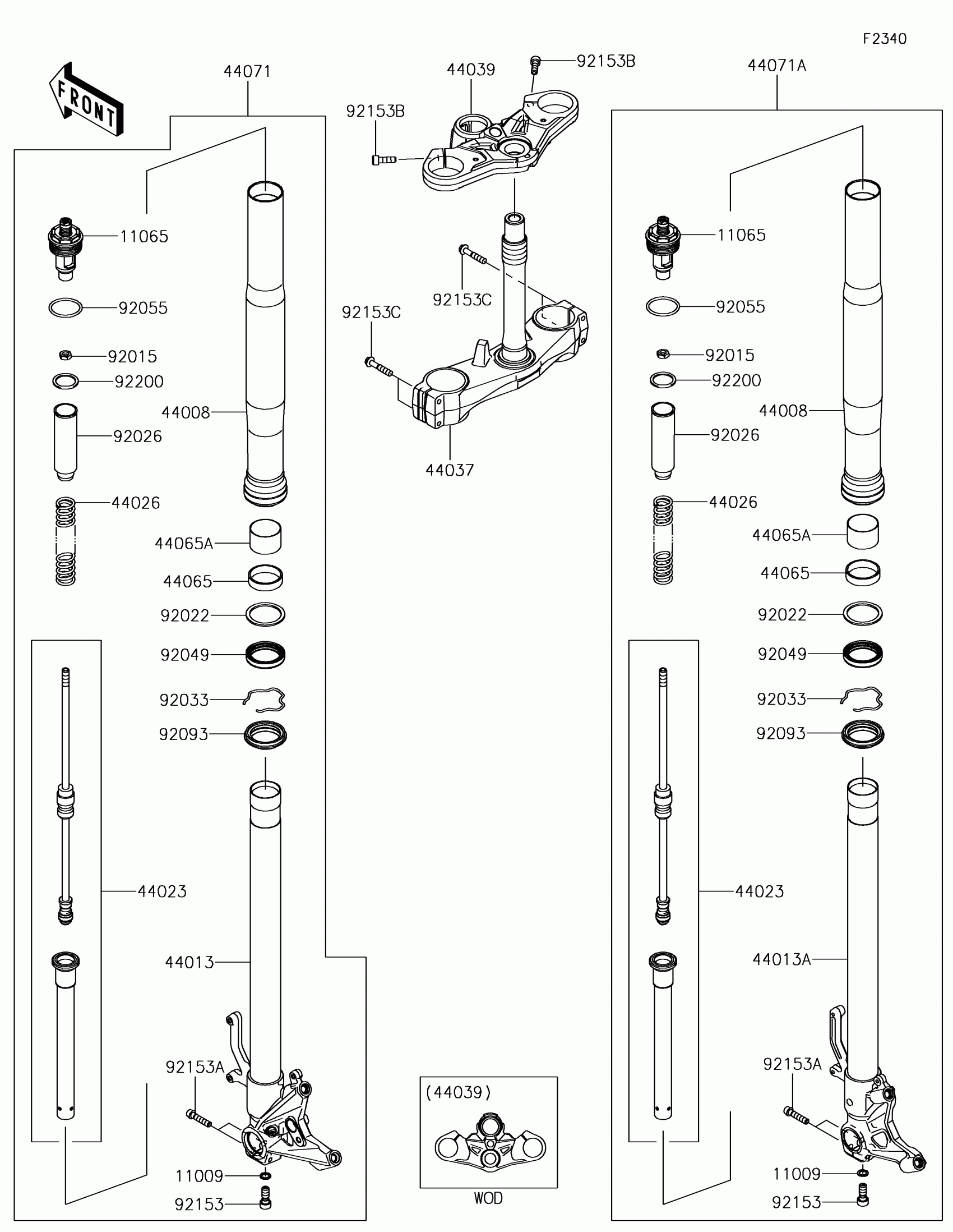 Kawasaki NINJA H2™ SX SE Front Fork Diagram