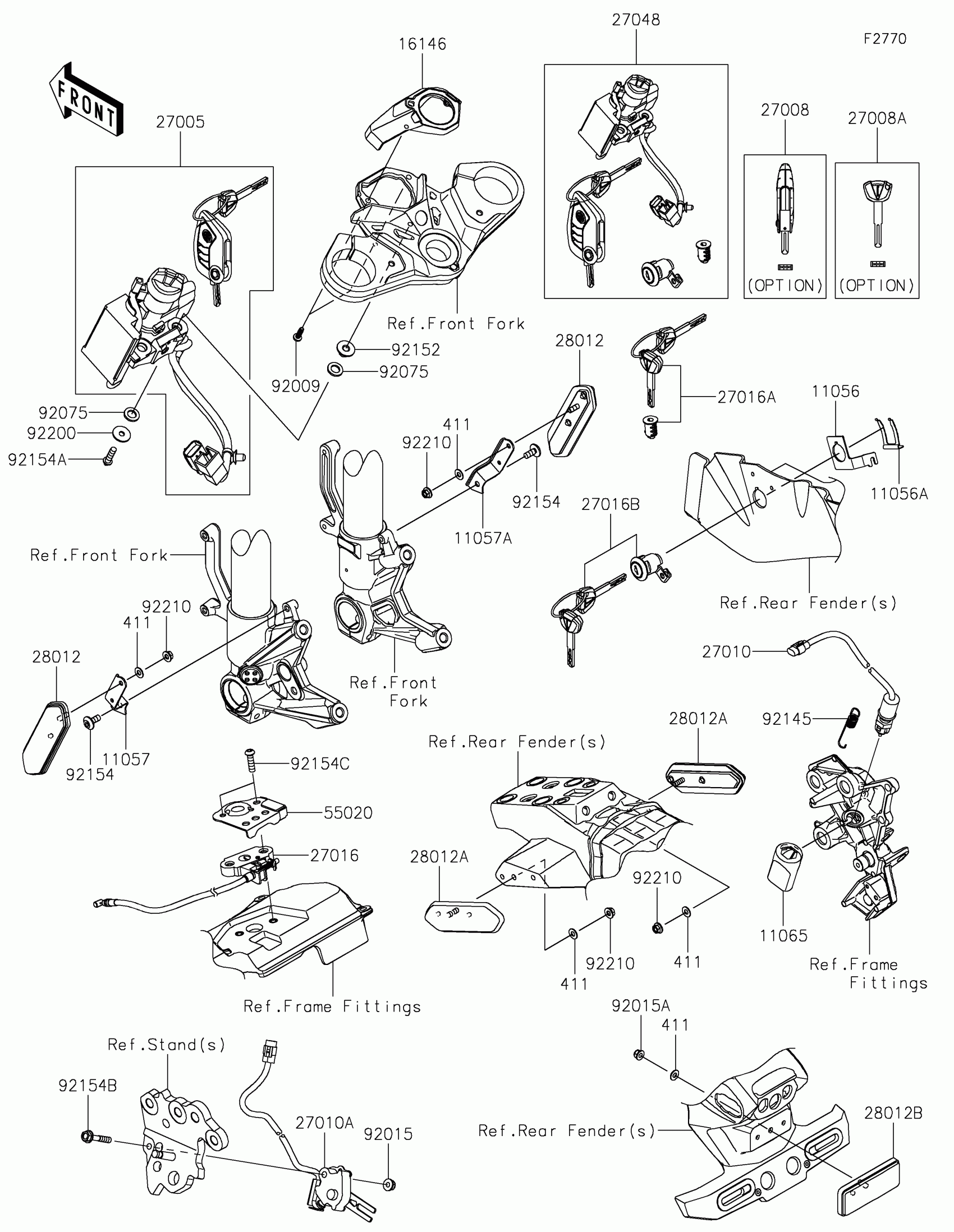 Kawasaki Ninja H2 SX SE Ignition Switch/Locks/Reflectors Diagram