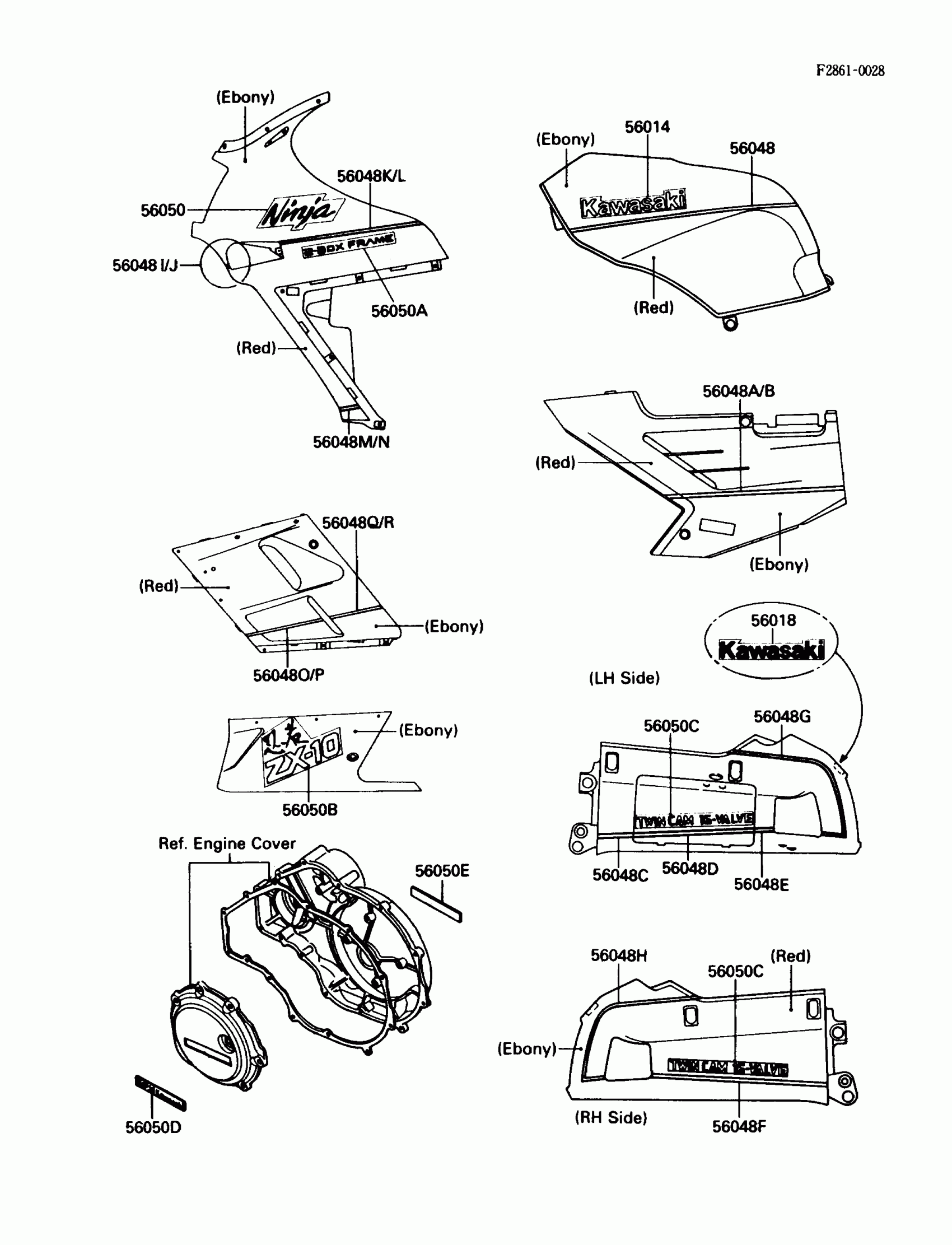 Kawasaki NINJA® ZX-10 Decals(Ebony/Red)(ZX1000-B1) Diagram