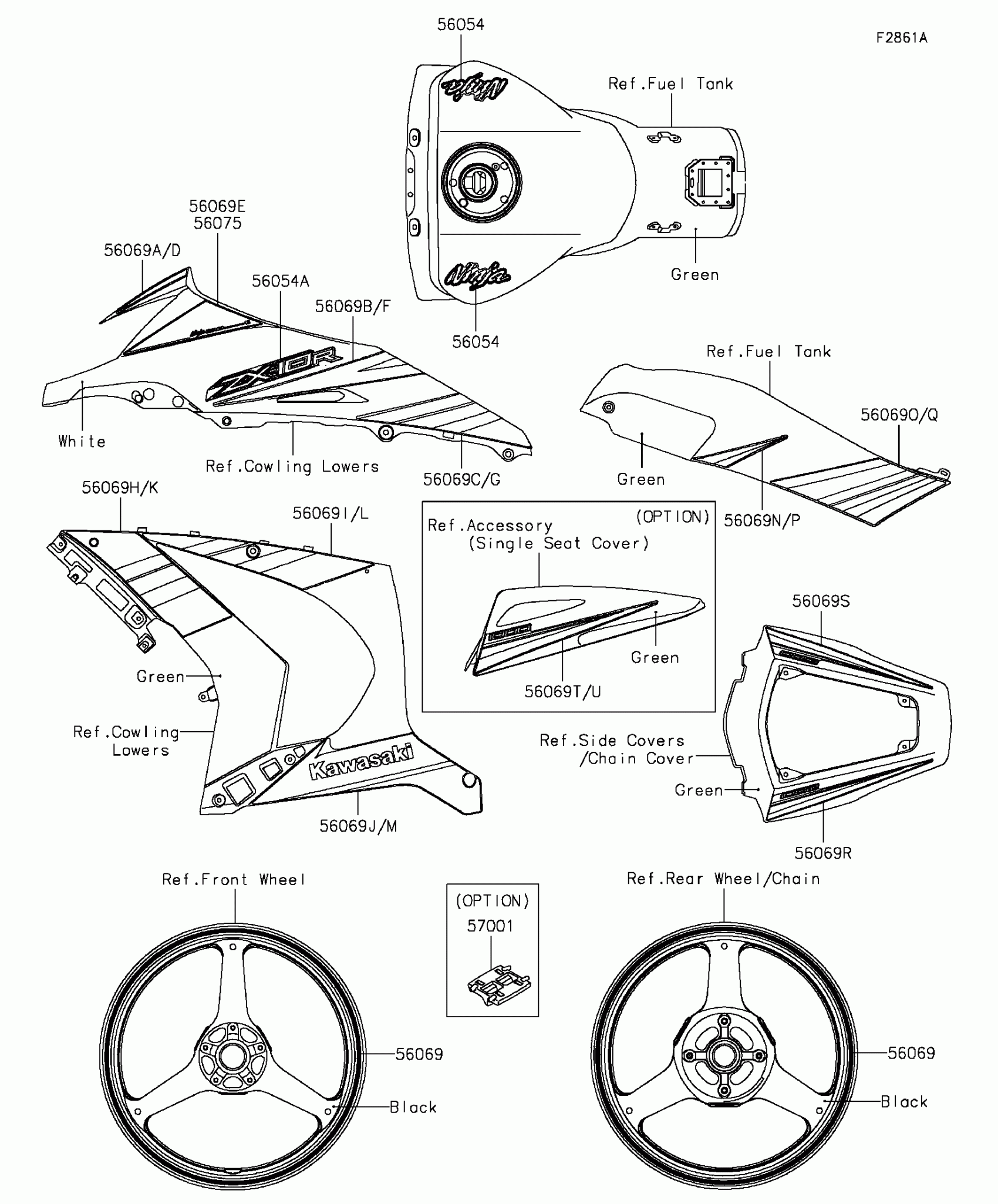Kawasaki Ninja® ZX™-10R 30th Anniversary Edition Decals(Green)(JFFA) Diagram