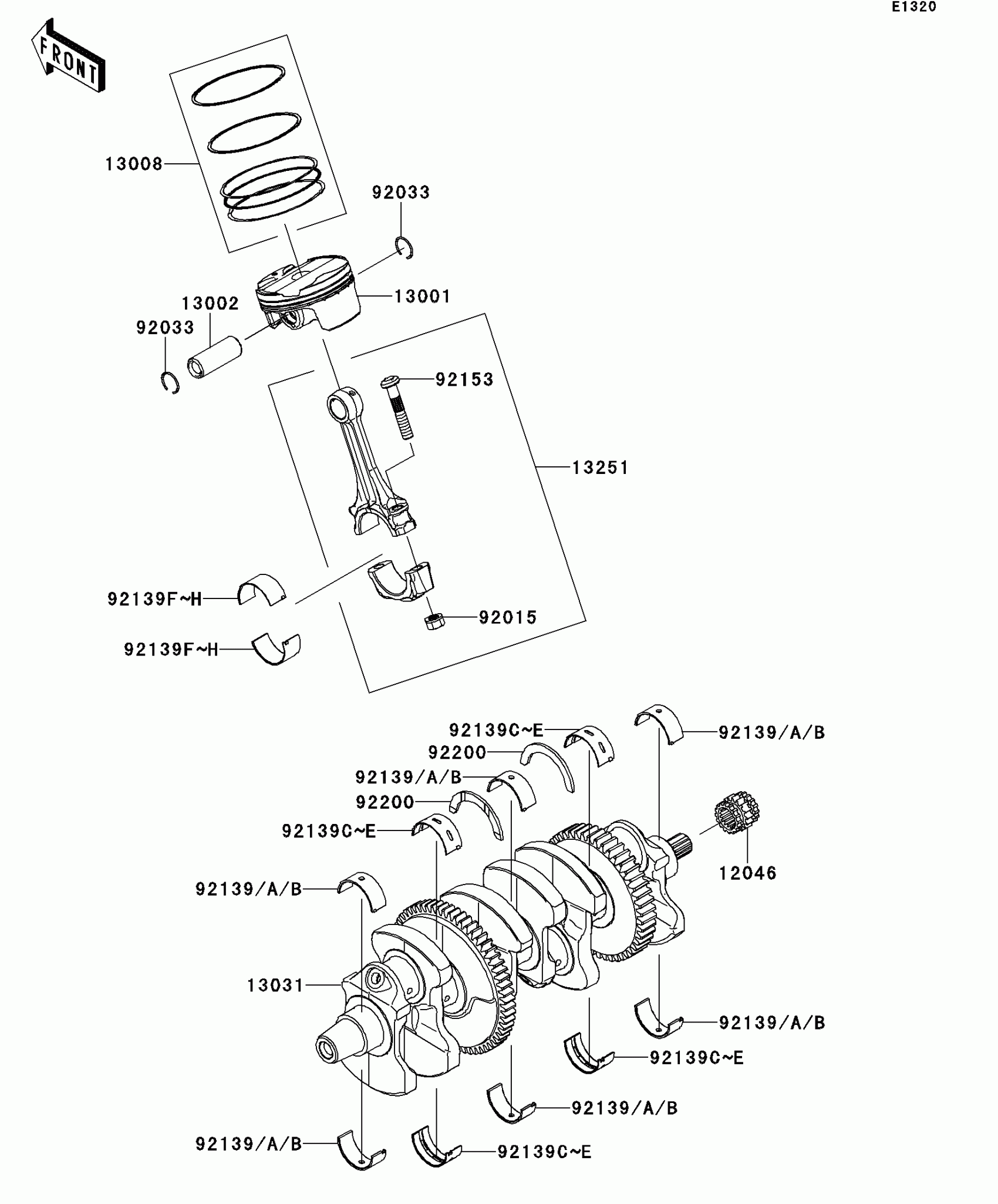 Kawasaki NINJA® ZX™-10R ABS Crankshaft/Piston(s) Diagram