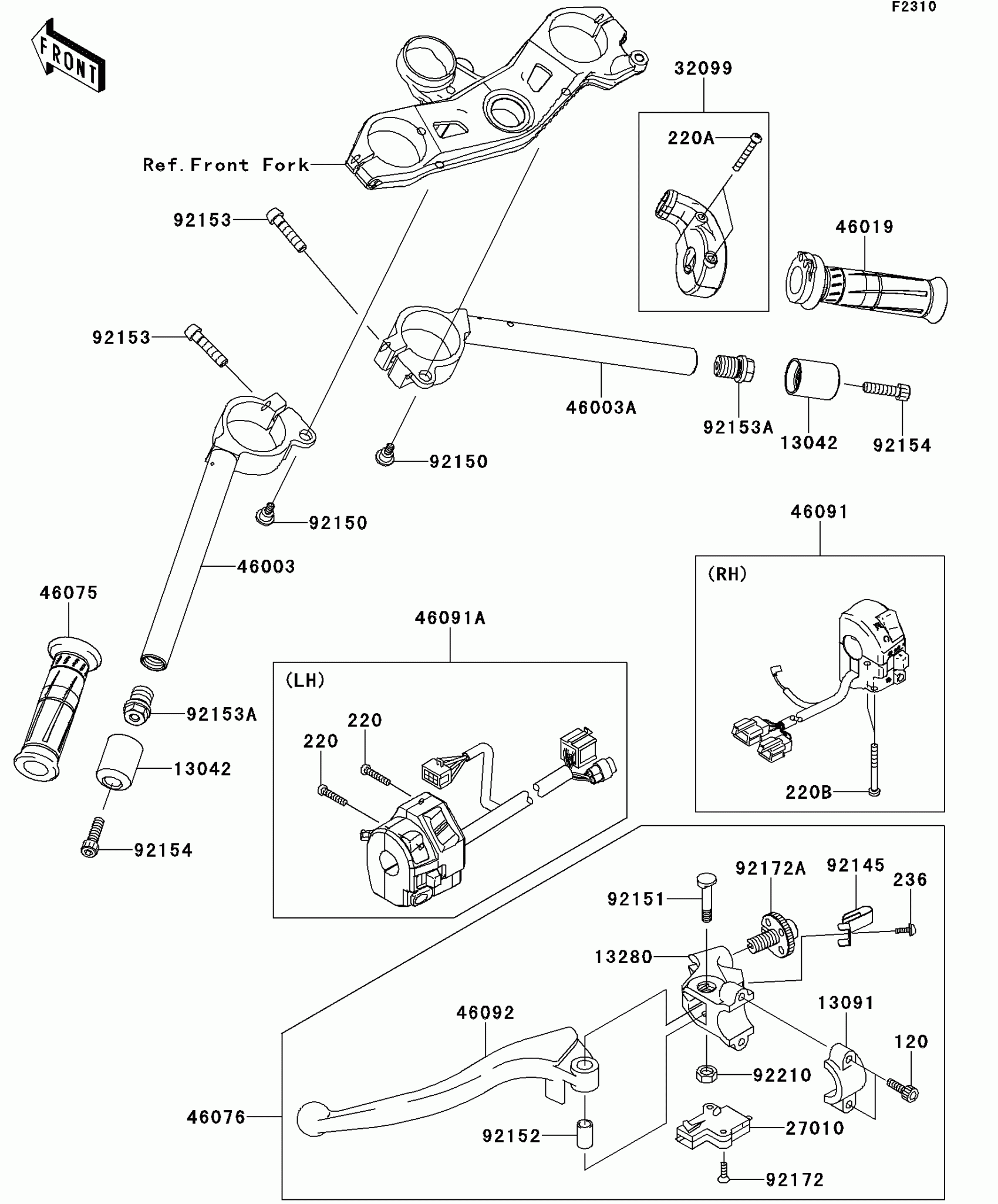 Kawasaki NINJA® ZX™-10R ABS Handlebar Diagram