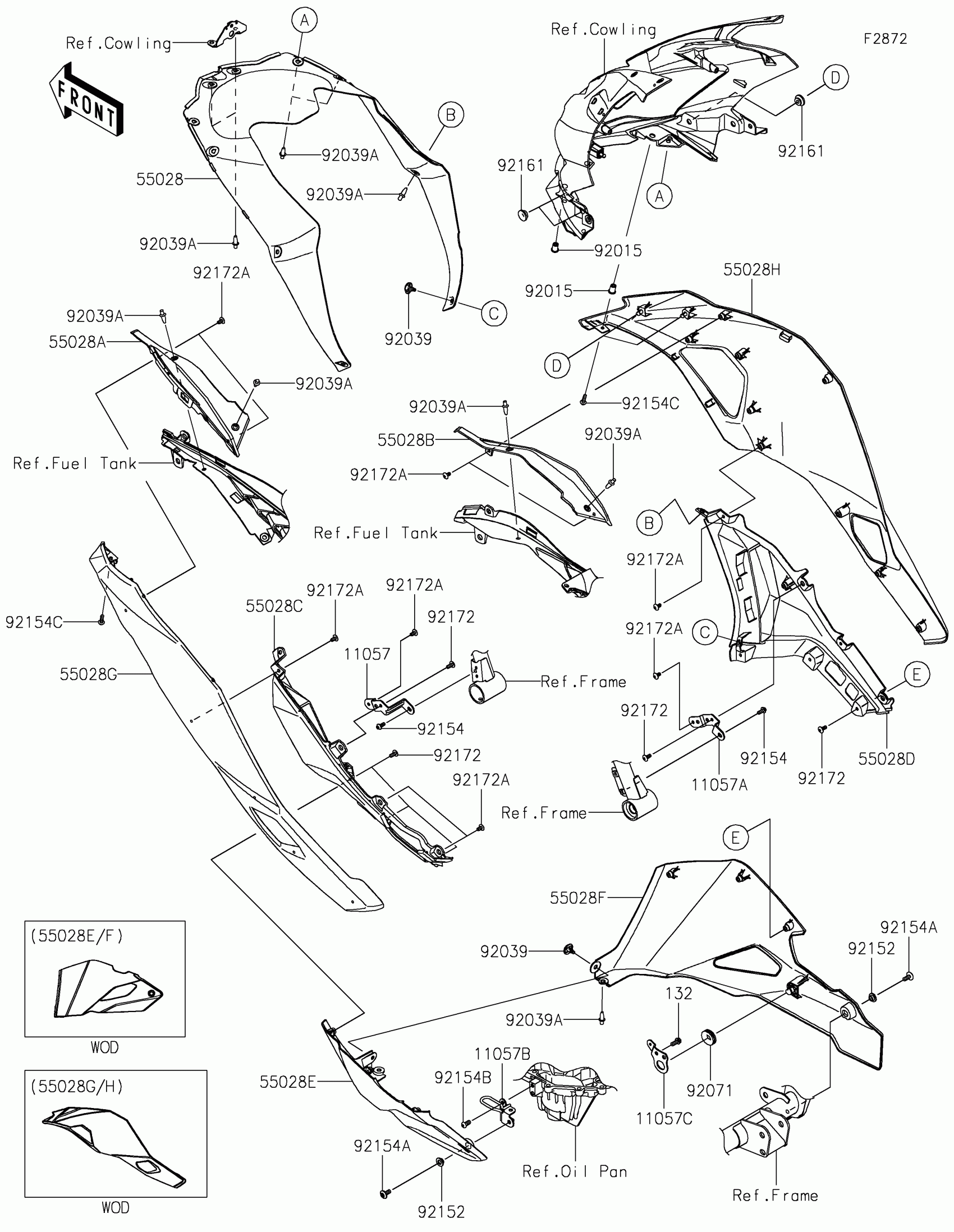 Kawasaki Ninja ZX-4R ABS Cowling Lowers Diagram