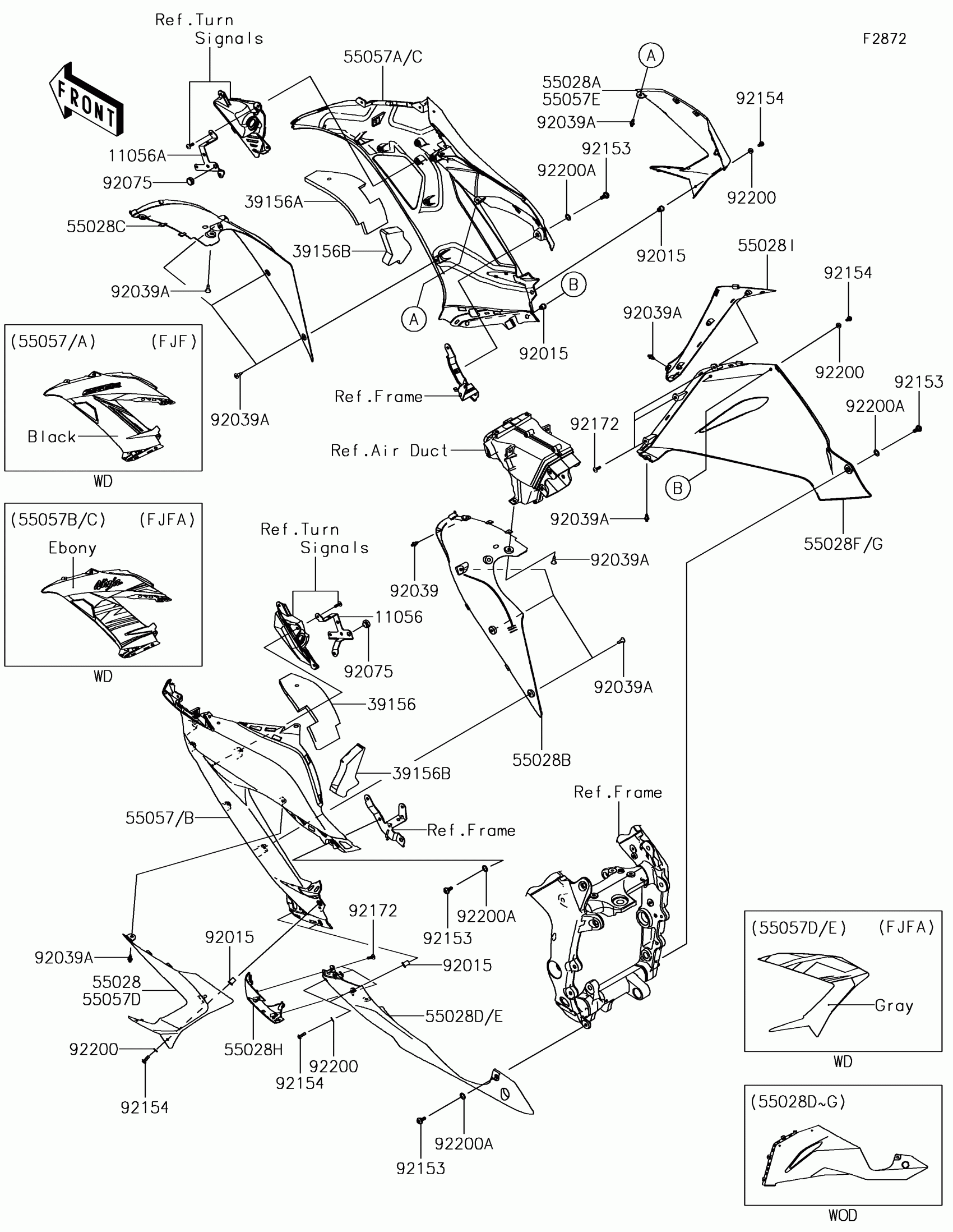 Kawasaki NINJA® ZX™-6R ABS Cowling Lowers Diagram