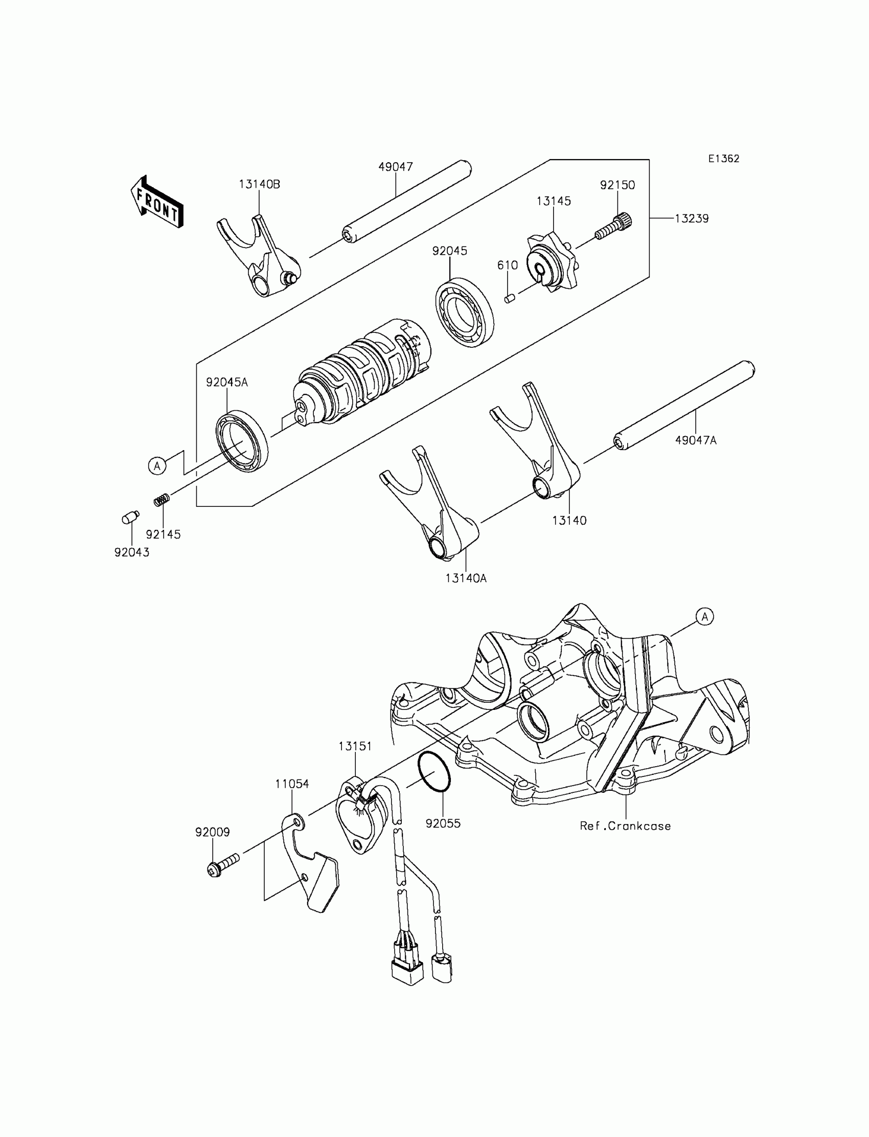 Kawasaki Ninja® ZX™-6R ABS Gear Change Drum/Shift Fork(s) Diagram