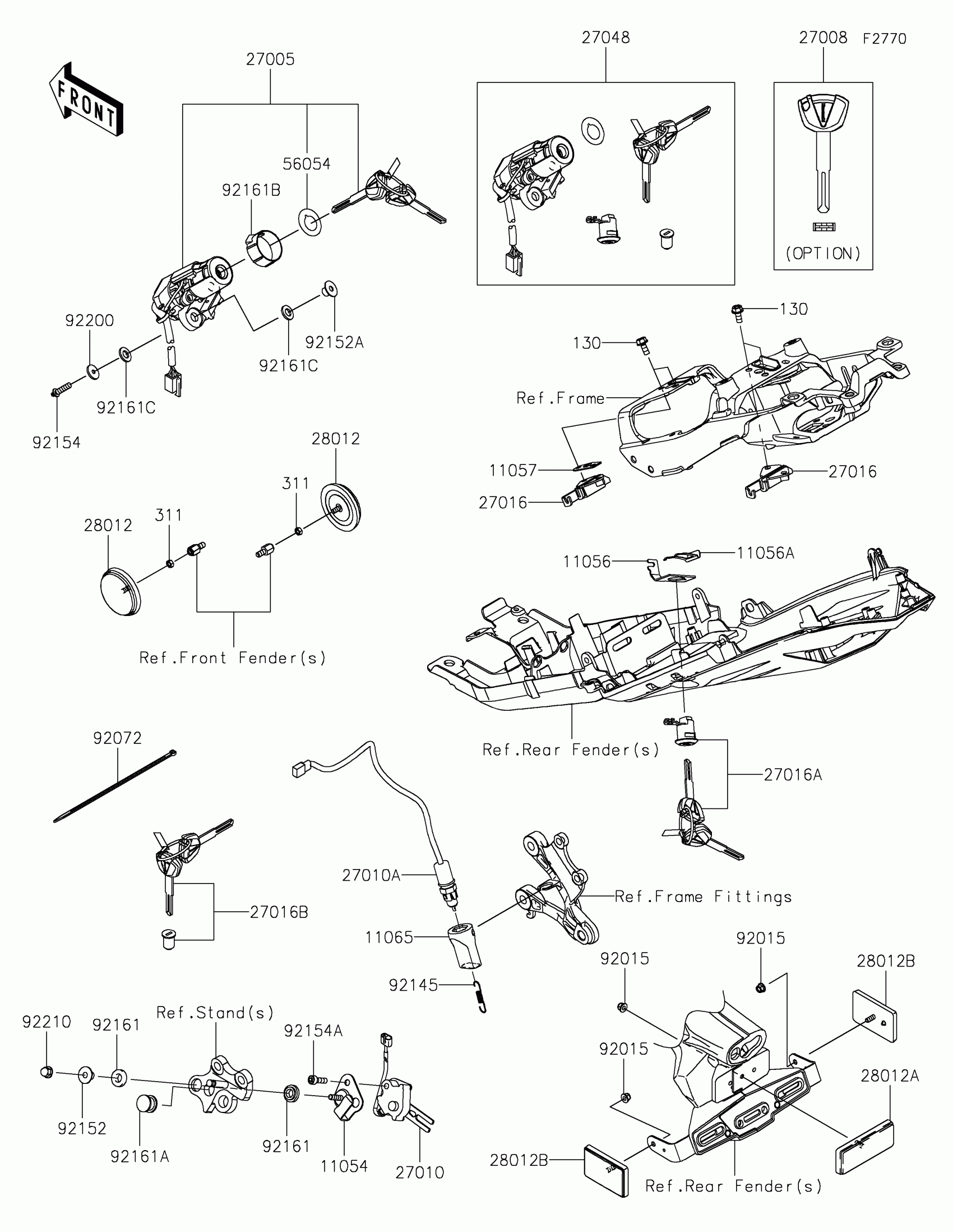 Kawasaki NINJA® ZX™-6R ABS Ignition Switch/Locks/Reflectors Diagram