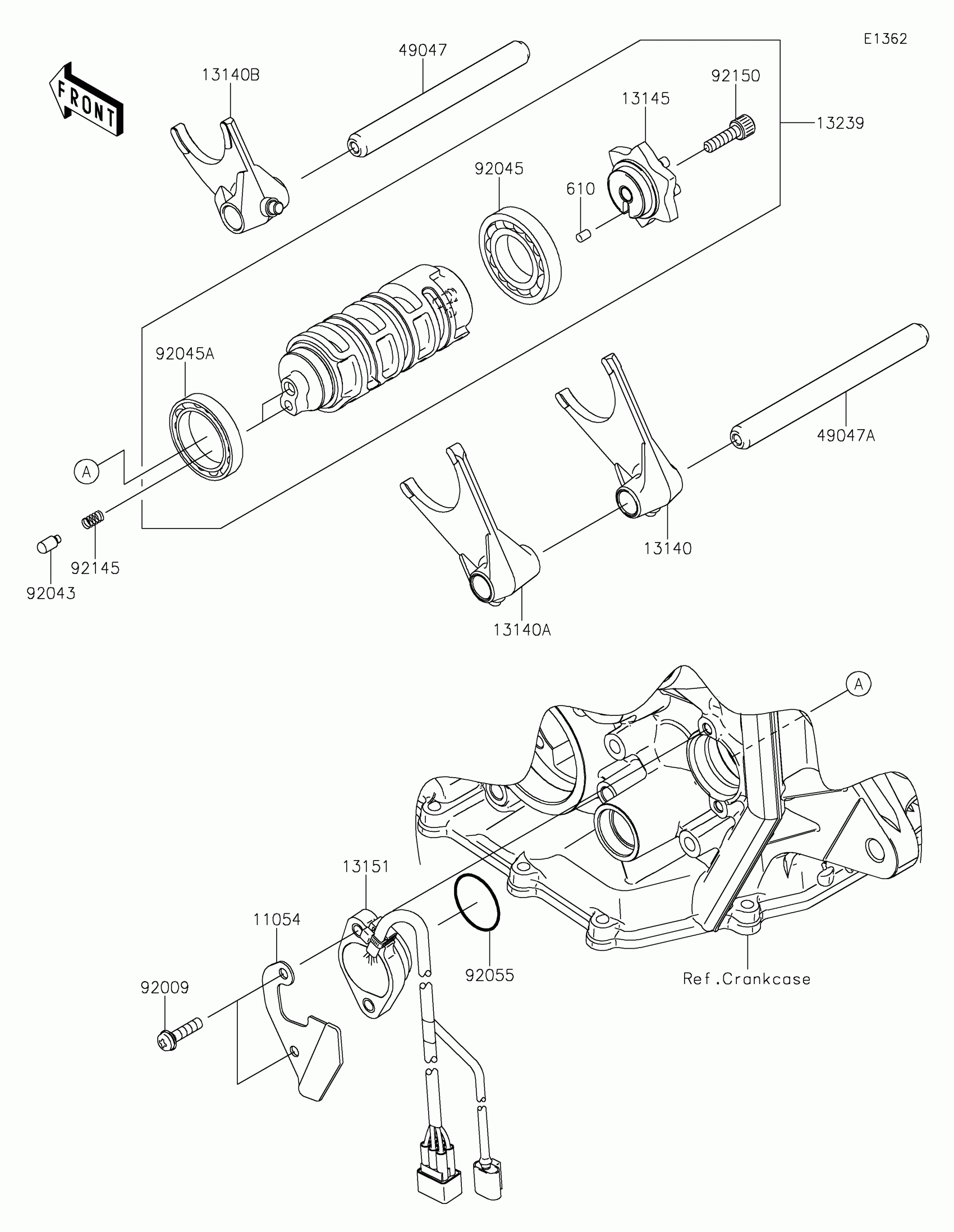 Kawasaki Ninja ZX-6R ABS KRT Edition Gear Change Drum/Shift Fork(s) Diagram