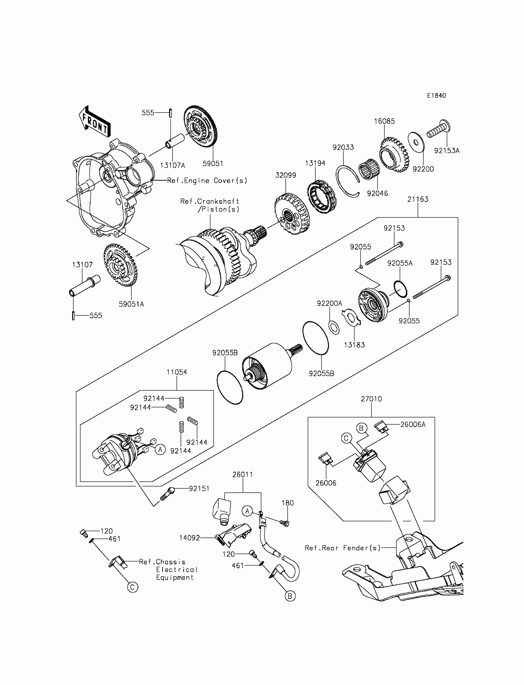 Kawasaki Ninja® ZX™-6R ABS Starter Motor Diagram