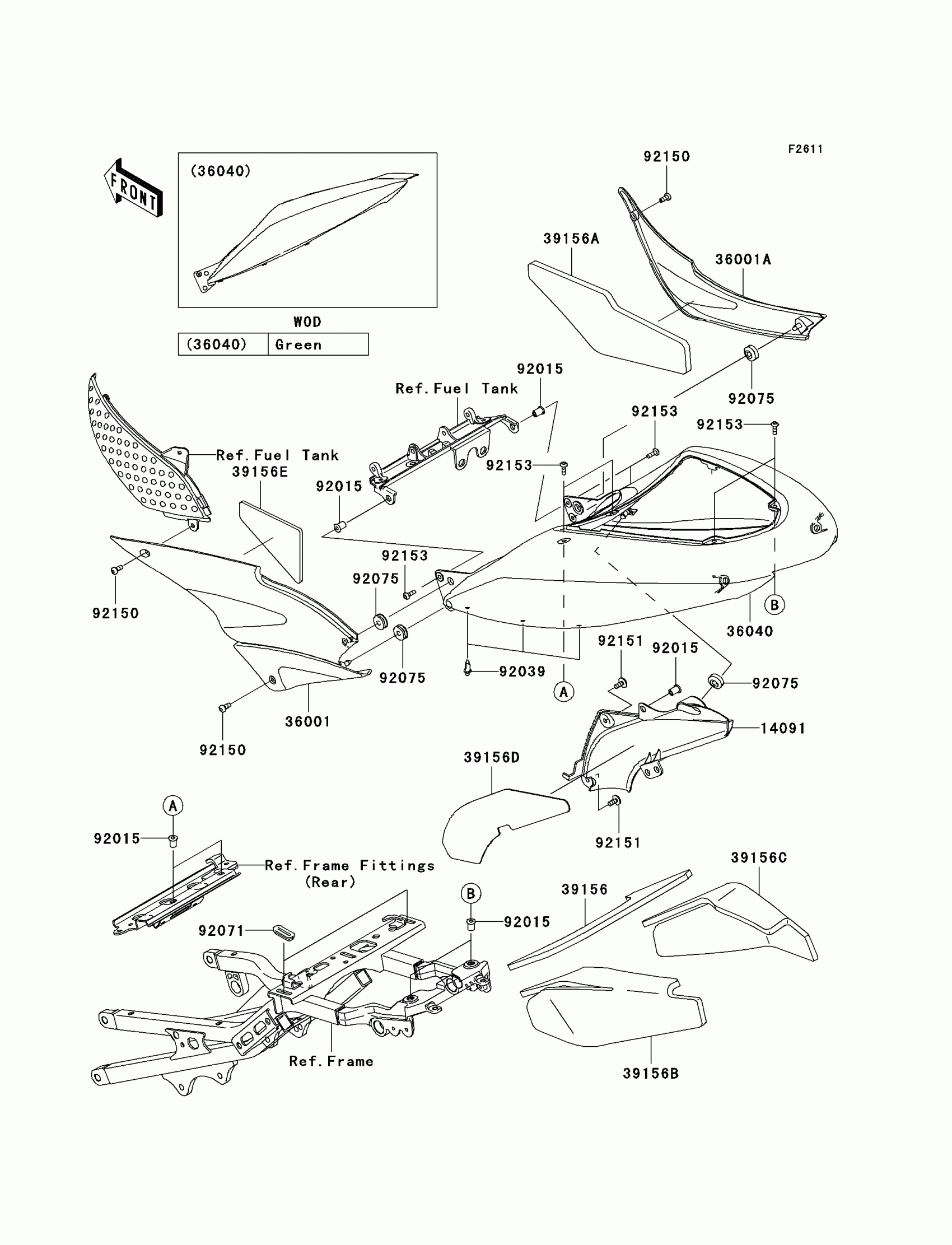 Kawasaki Ninja® ZX™-6RR Side Covers Diagram
