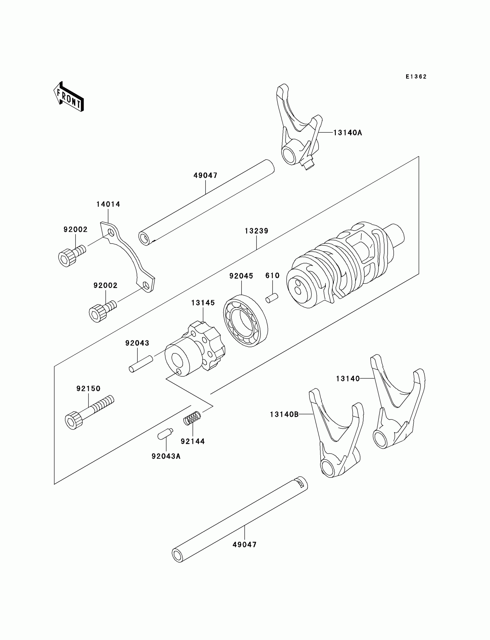 Kawasaki Ninja® ZX™-7R Gear Change Drum/Shift Fork(s) Diagram
