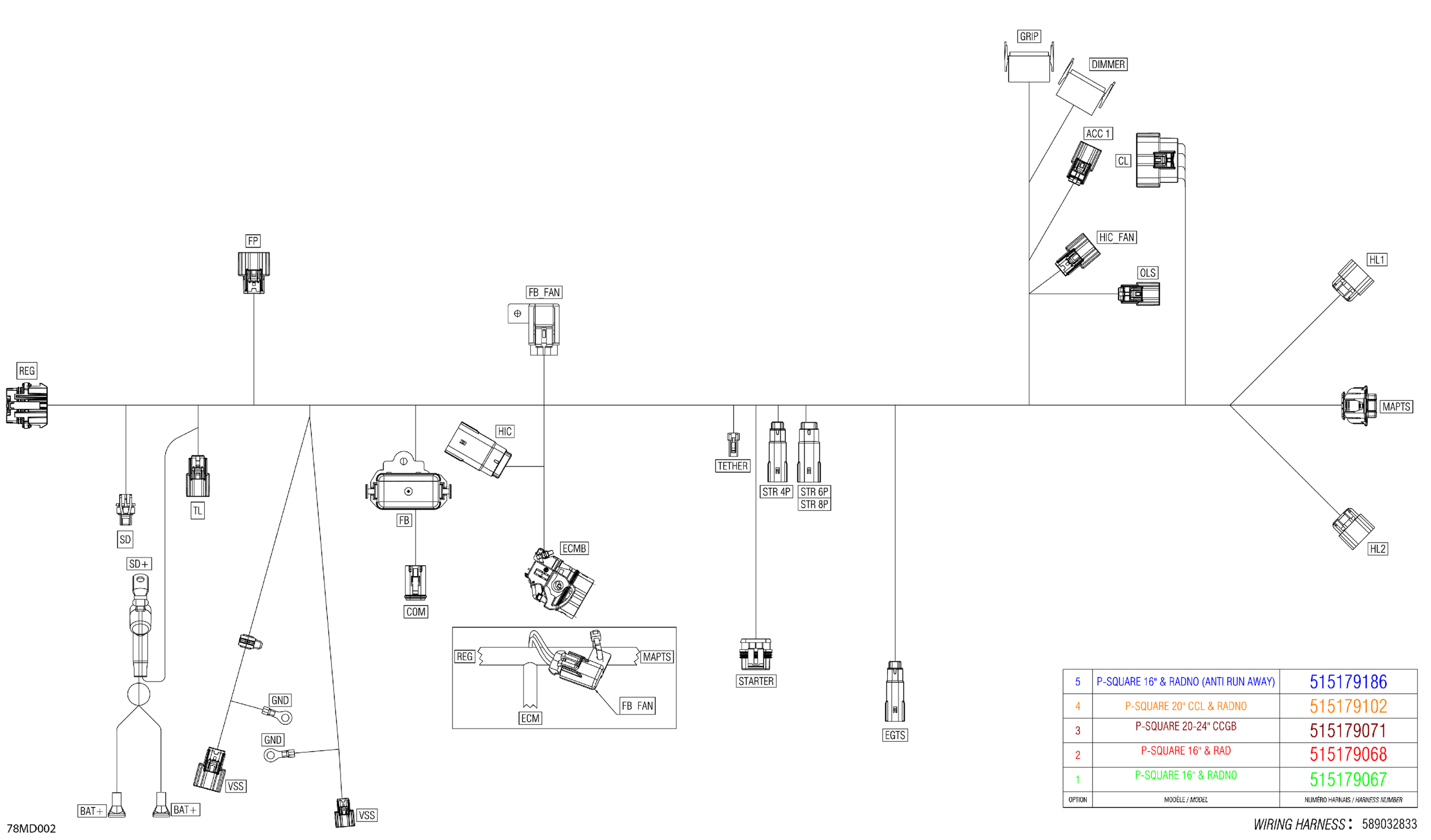 Ski-Doo BACKCOUNTRY 600 EFI - SPORT - UBRA - Neo Yellow - 146X15X1.6C Track, 2024 Electric - Main Harness - 515179401 Diagram