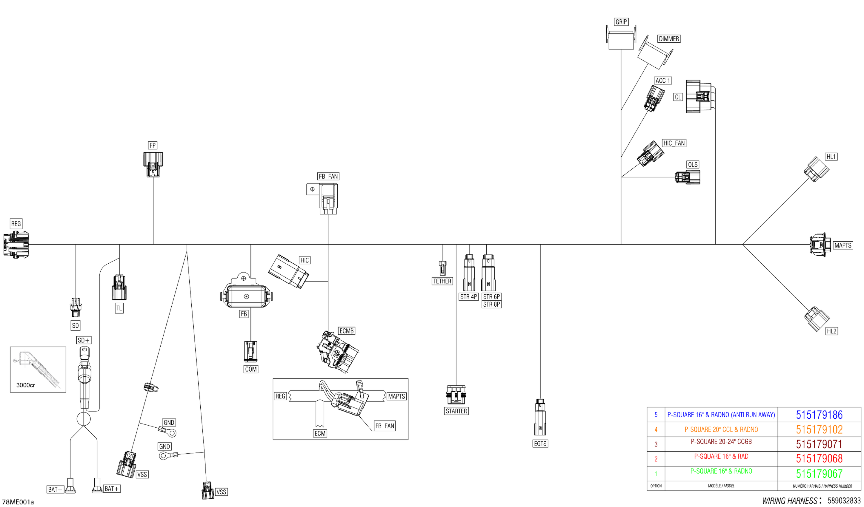 Ski-Doo BACKCOUNTRY - 600 EFI - SPORT - UBSA - Neo Yellow - 146X15X1.6C Track - 2025 Electric - Main Harness - 515179401 Diagram