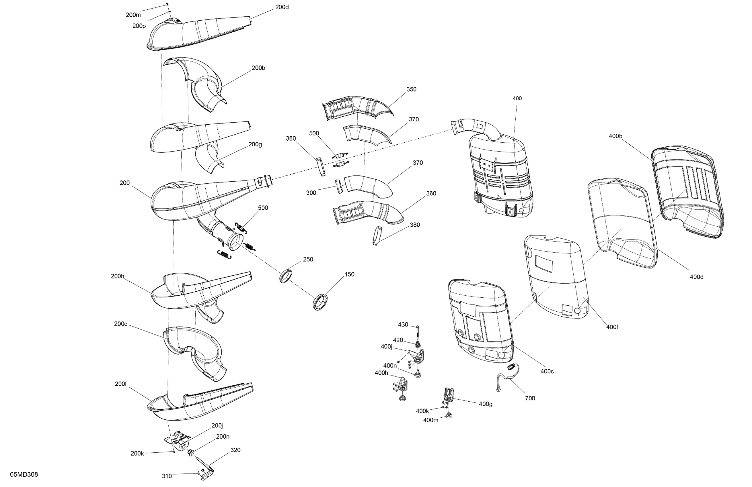 Ski-Doo North America - BACKCOUNTRY 600R E-TEC - Adrenaline - UJRA - Deep Black - 146X15X1.6C Track, 2024 02- Engine - Exhaust Diagram