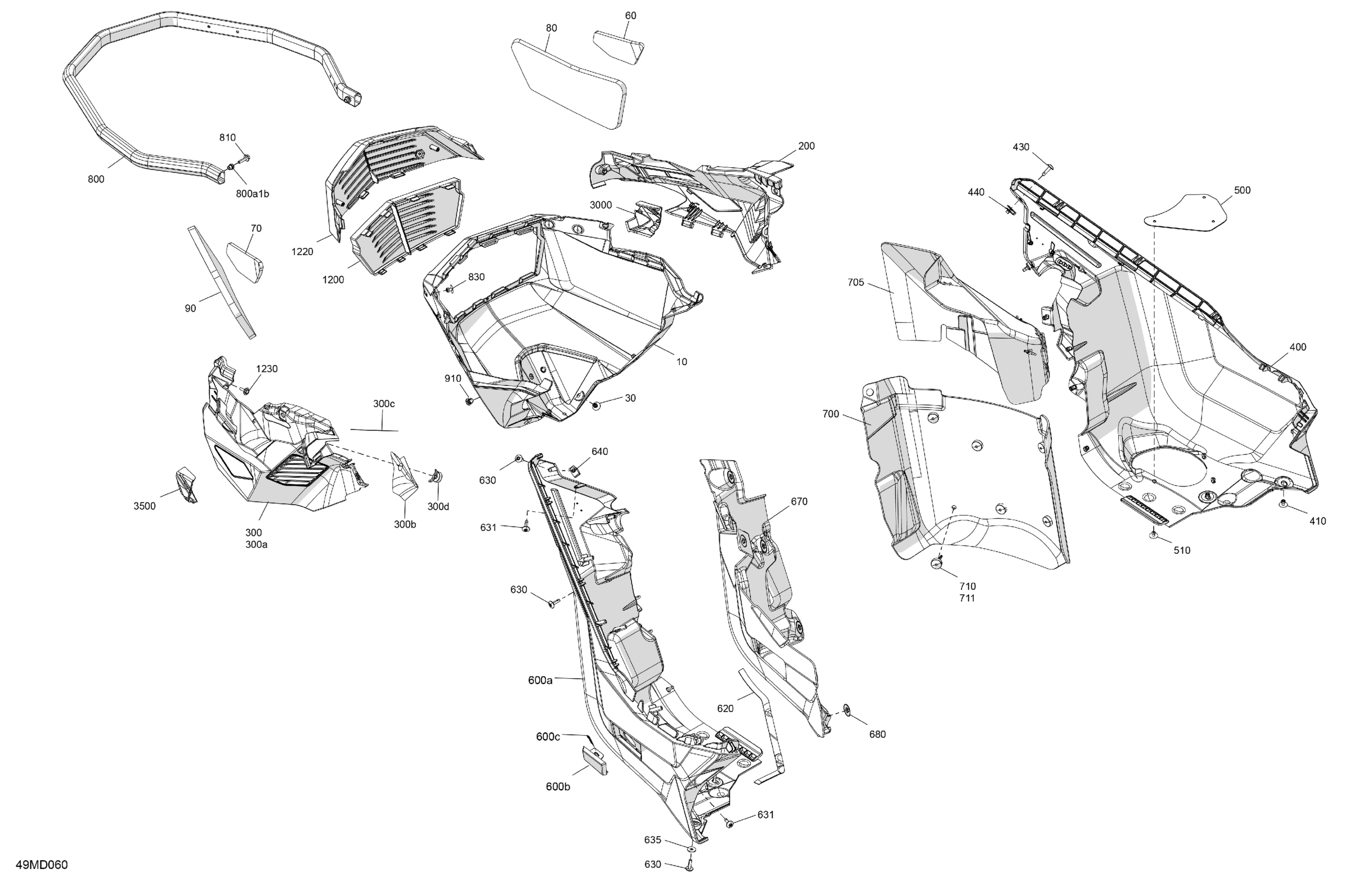 Ski-Doo North America - BACKCOUNTRY 600R E-TEC - Adrenaline - UJRC - Neo Yellow - 146X15X1.6C Track, 2024 07- Body - Bottom Pan Diagram