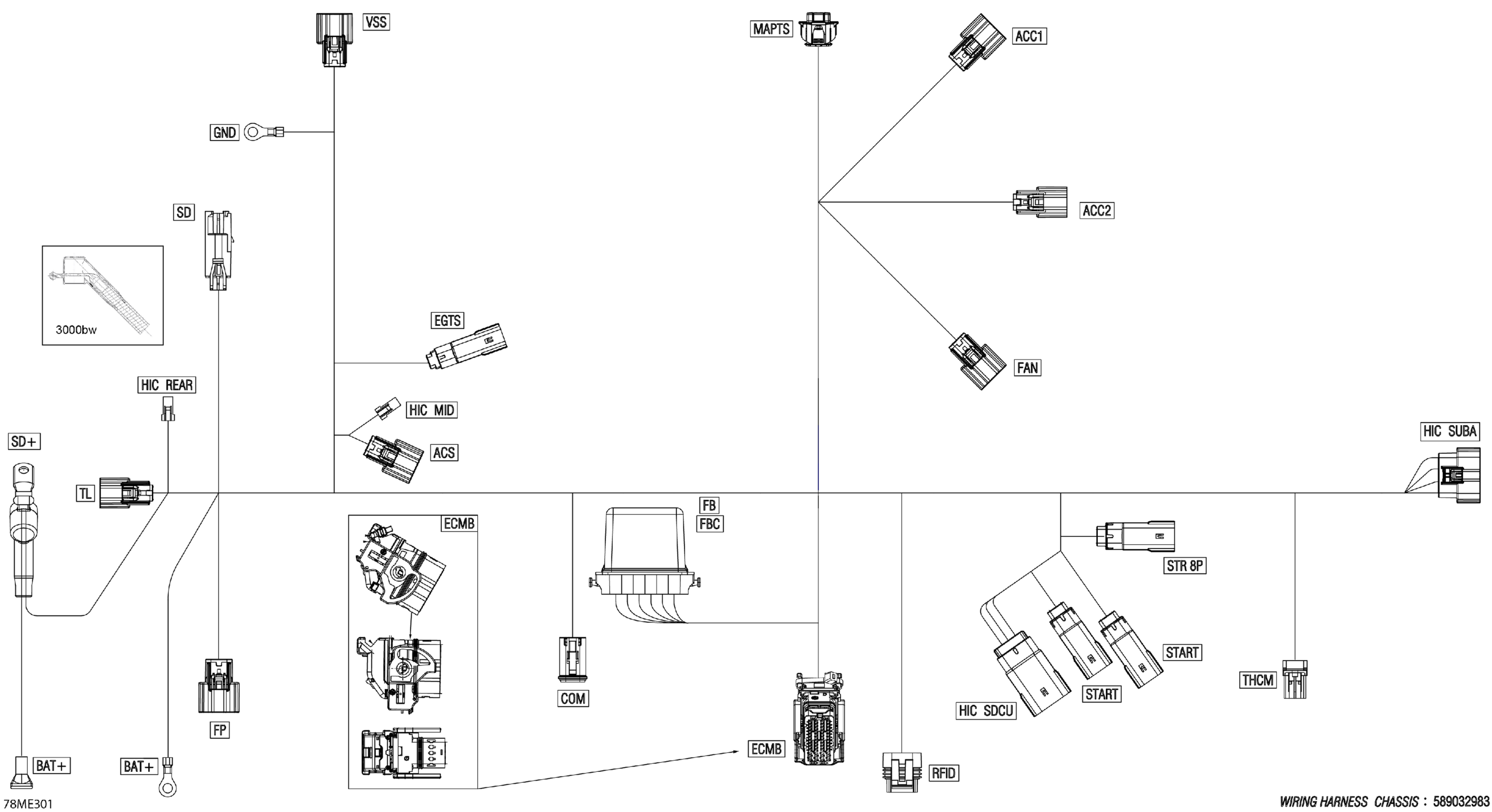 Ski-Doo BACKCOUNTRY - 600R E -TEC - Adrenaline - UJSA - Deep Black - 146X15X1.6C Track - 2025 Electric - Main Harness - 515179387 Diagram