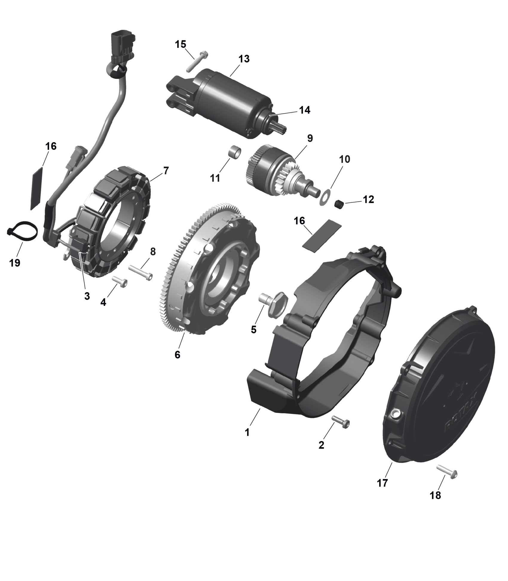 Ski-Doo BACKCOUNTRY - 850 E-TEC - Adrenaline - UGSA - Catalyst Gray - 146X16X2.0P Track - 2025 ROTAX - Magneto and Electric Starter Diagram
