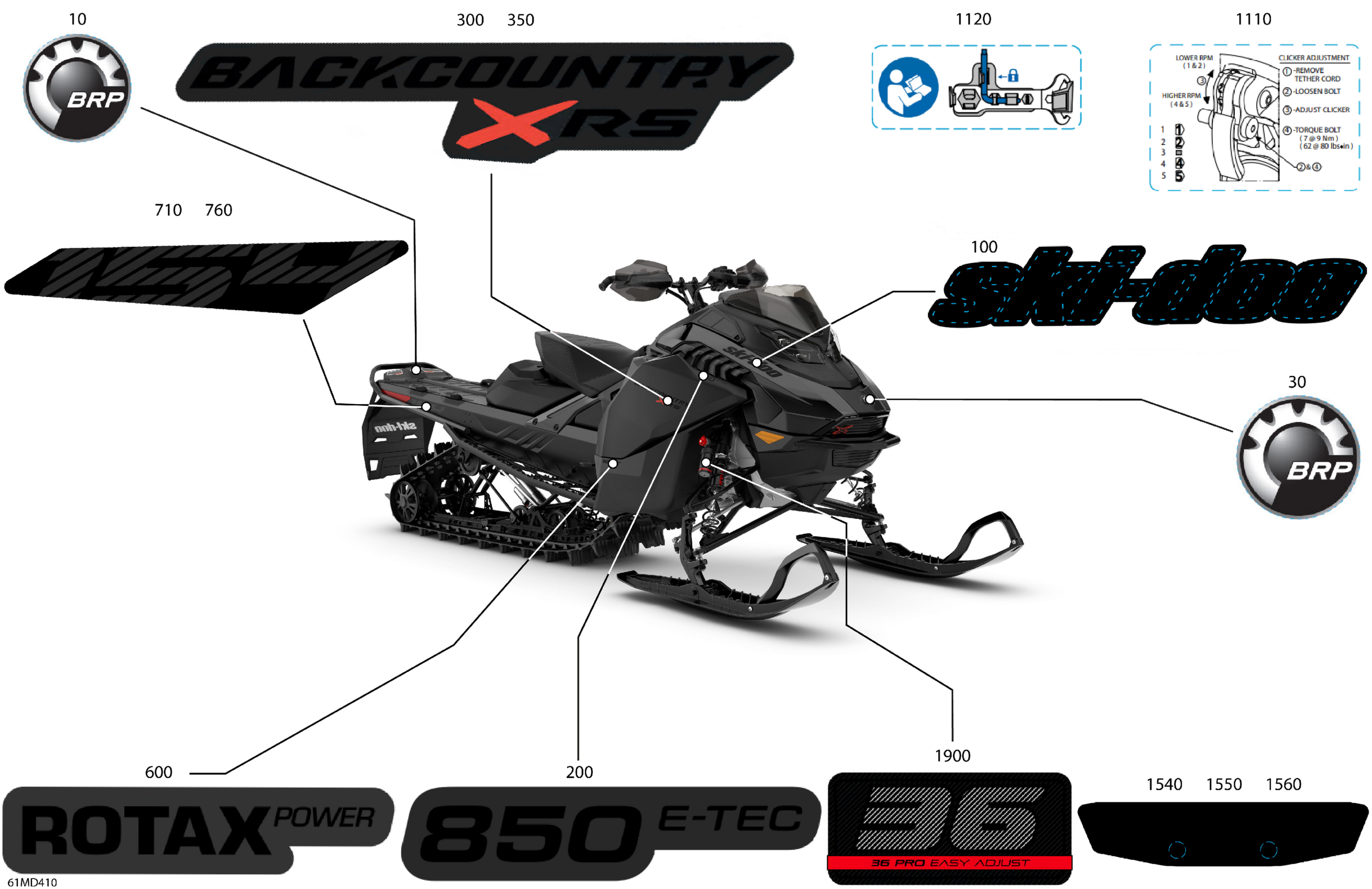 Ski-Doo North America - BACKCOUNTRY 850 E-TEC - X-RS - UZRL - Deep Black - 154X16X2.0P Track, 2024 07- Body - Decals Diagram