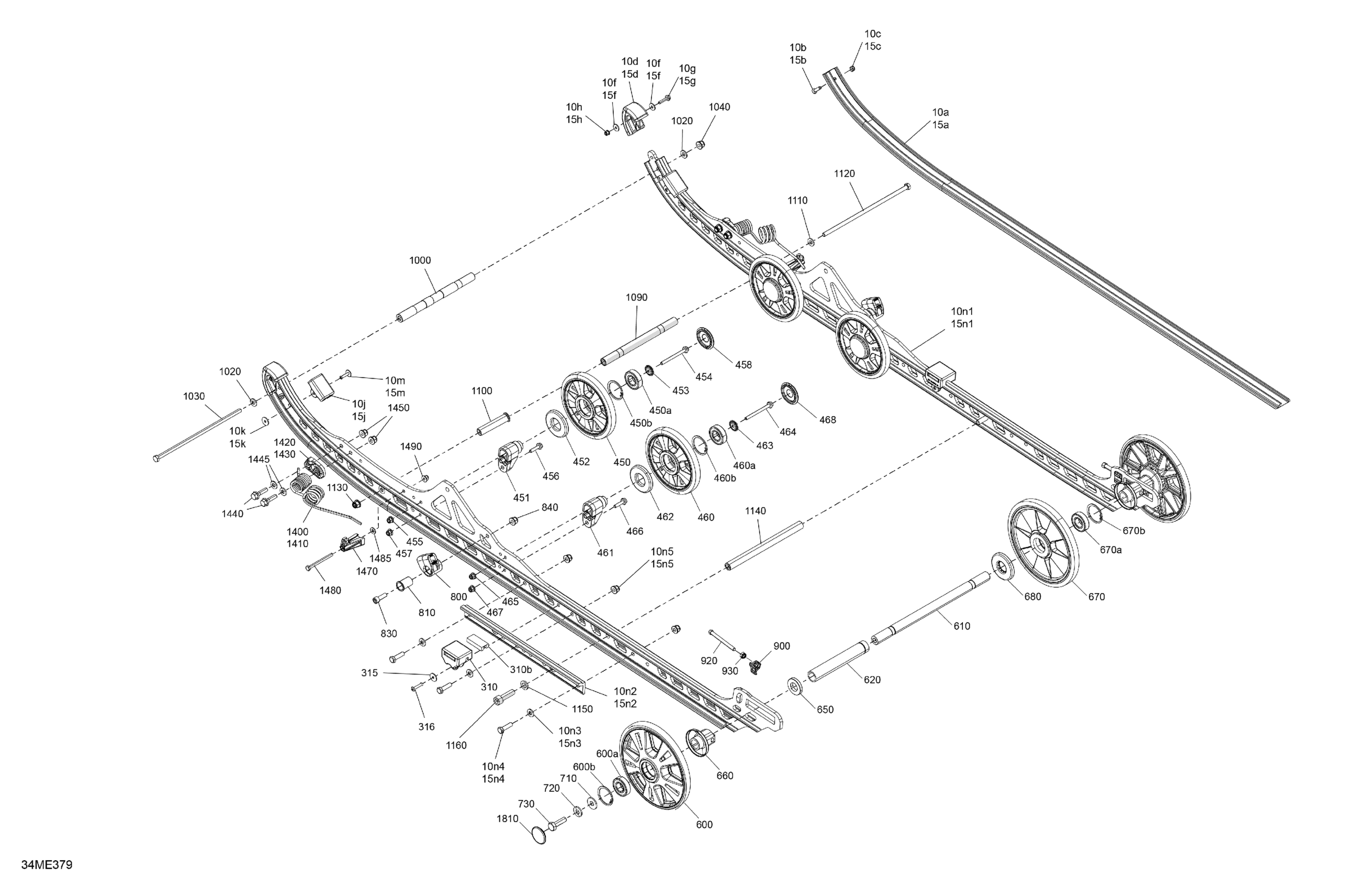 Ski-Doo North America - BACKCOUNTRY - 850 E-TEC - X-RS - UZSD - Flare Yellow HG - 154X16X2.5PII Track - 2025 05- Suspension - Rear - Lower Section Diagram